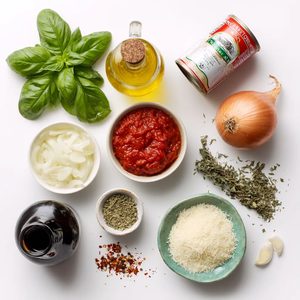 Each ingredient plays a key role. The olive oil adds richness, while onions and garlic provide a savory base. Crushed tomatoes create the sauce’s heartiness, and tomato paste intensifies the flavor. Dried herbs like oregano and basil give it that classic Italian touch. Red pepper flakes can add a bit of heat if you like it spicy. Finally, balsamic vinegar rounds out the taste, making it truly special.