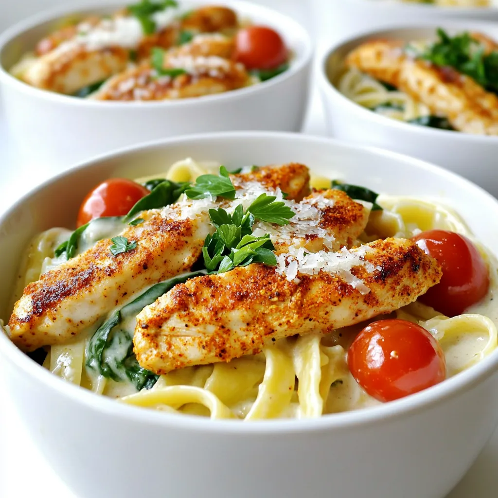 For creaminess, have 1 cup of heavy cream and 1 cup of grated Parmesan cheese ready. The cheese adds a rich taste. Don’t forget 1 cup of cherry tomatoes, halved, for some sweetness. You will also need 2 cups of fresh spinach for color and nutrition. Lastly, grab 2 cloves of garlic, minced, for that delicious aroma.