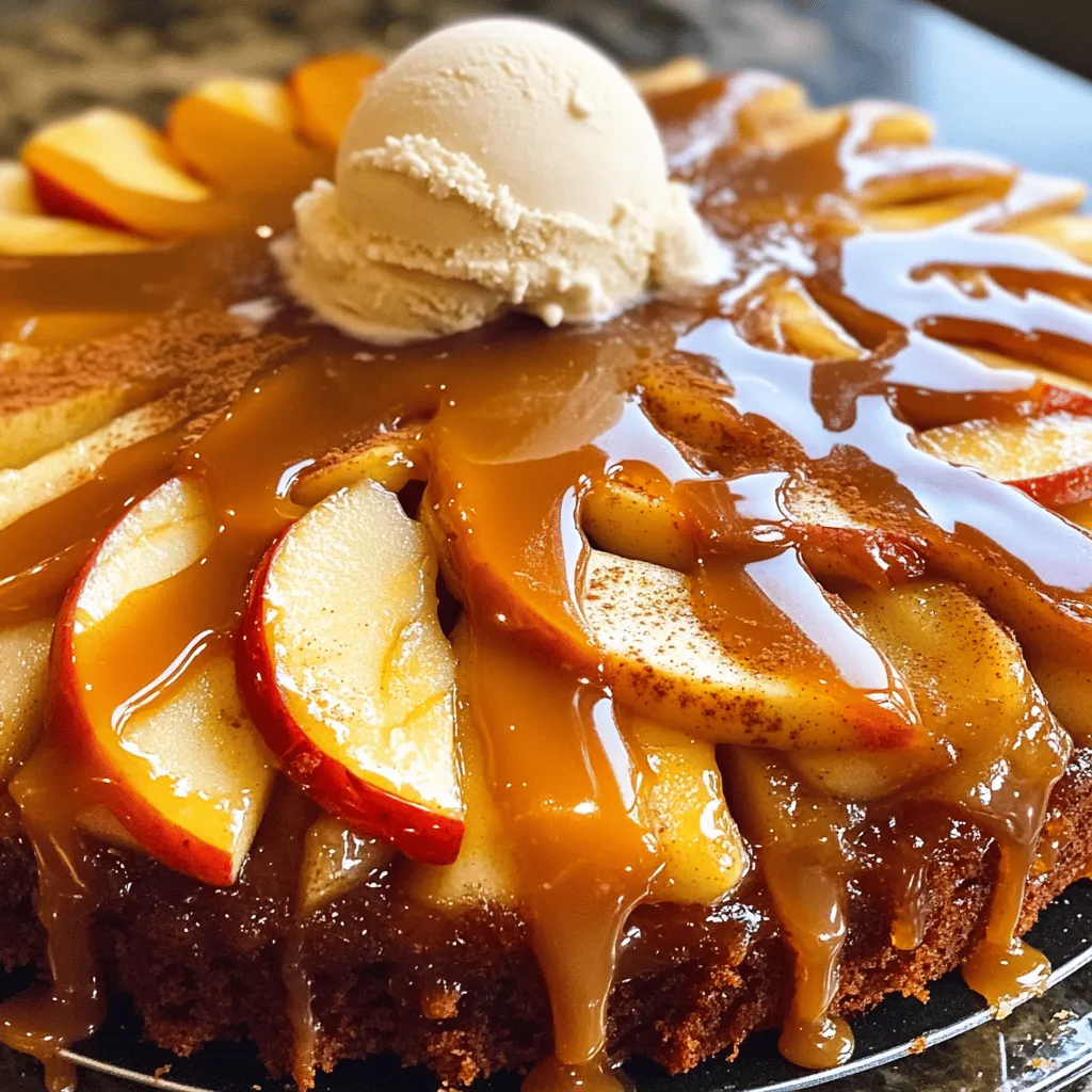 When I make Caramel Apple Upside Down Cake, I start with fresh apples. I prefer medium apples like Granny Smith or Honeycrisp. They add a nice tartness. Next, I grab brown sugar, which gives the cake a rich flavor.