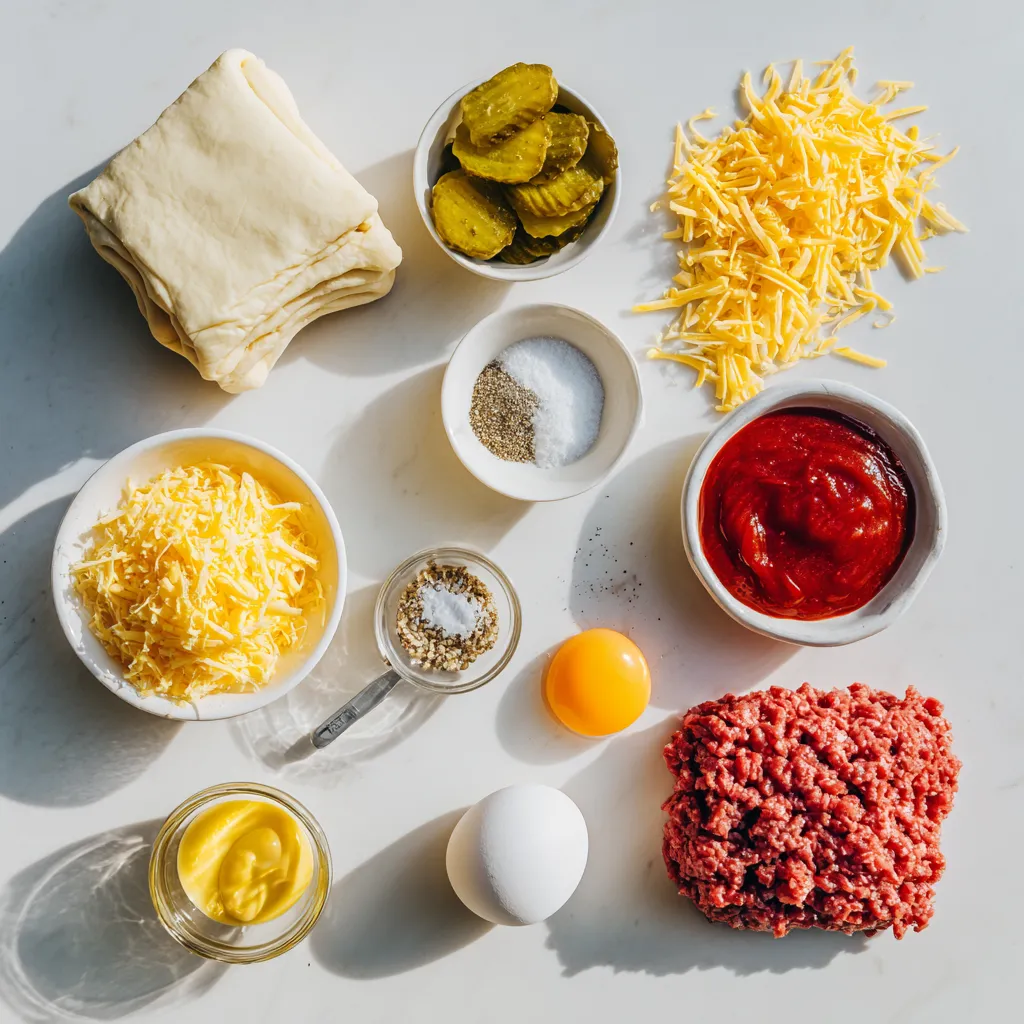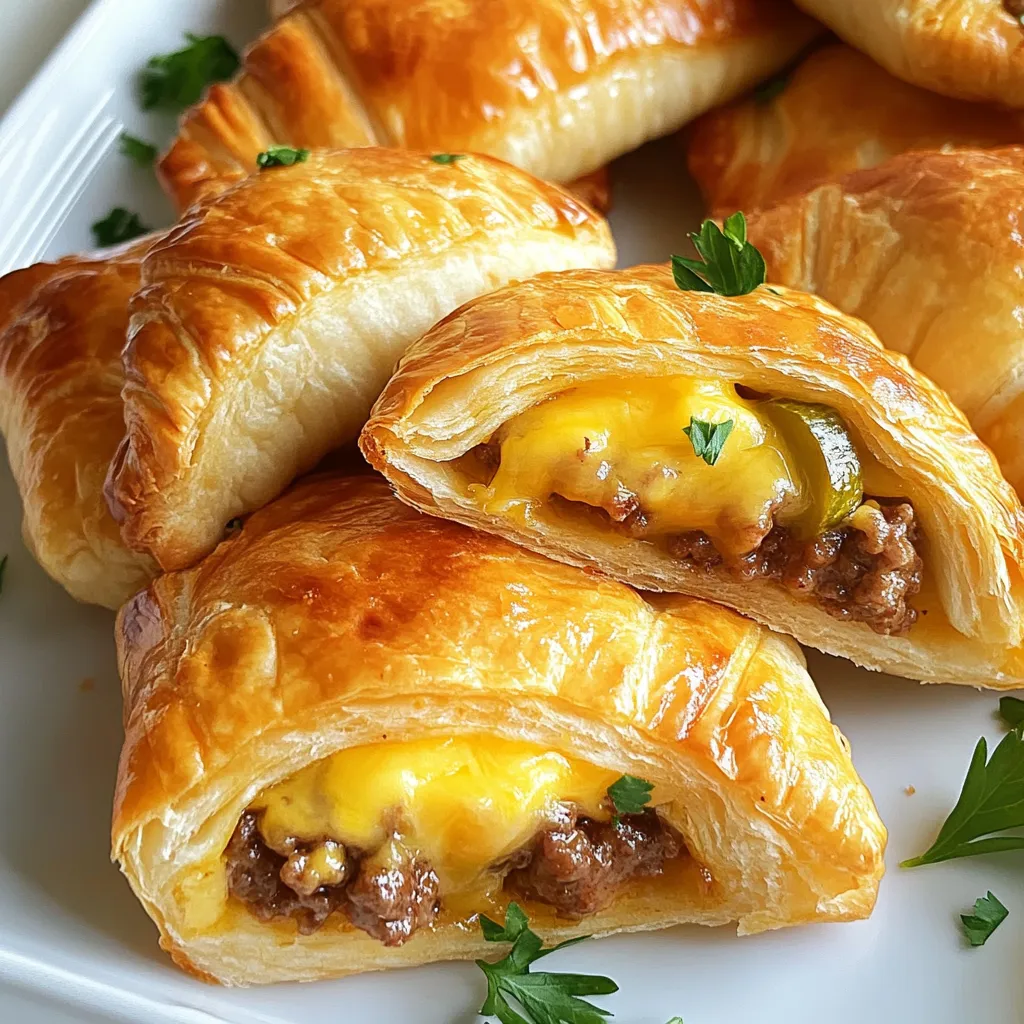 Delicious bite-sized pockets filled with seasoned ground beef, cheese, and pickles, perfect for a snack or appetizer.