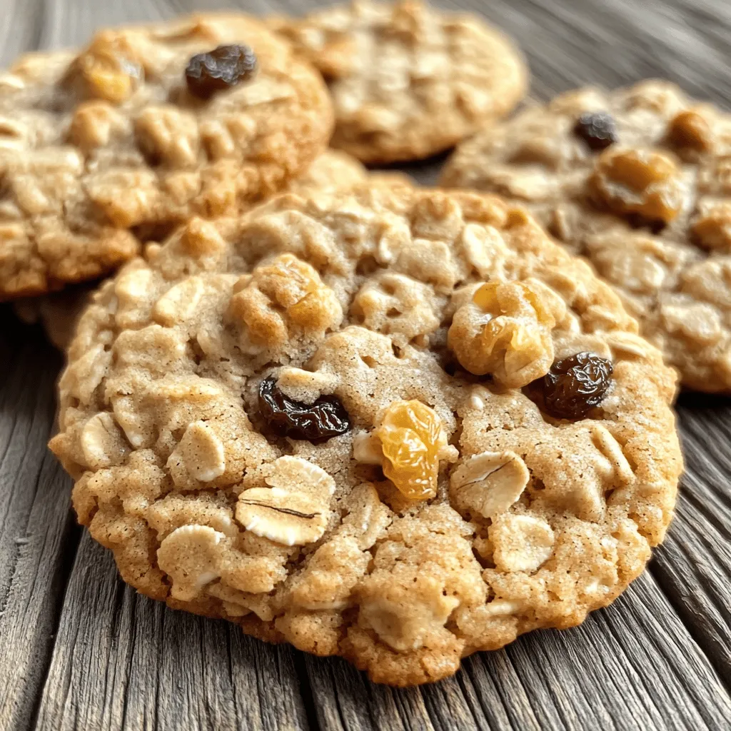 ![To make chewy oatmeal raisin cookies, gather these ingredients: - 1 cup unsalted butter, softened - 1 cup packed brown sugar - 1/2 cup granulated sugar - 2 large eggs - 1 teaspoon vanilla extract - 1 1/2 cups all-purpose flour - 1 teaspoon baking soda - 1 teaspoon cinnamon - 1/2 teaspoon salt - 3 cups old-fashioned oats - 1 cup raisins - 1/2 cup chopped walnuts (optional) Each ingredient plays a key role. The butter adds richness. Brown sugar gives moisture and flavor. Eggs bind everything together. Oats add texture and chewiness. You can swap some ingredients if needed. For a dairy-free version, use coconut oil instead of butter. If you want a lower sugar option, try using coconut sugar instead of brown sugar. Applesauce can replace eggs for a vegan cookie. Also, you can replace raisins with chocolate chips for a twist. Choosing quality brands makes a difference. For butter, look for brands like Kerrygold or Land O'Lakes. For oats, Bob's Red Mill offers great old-fashioned oats. When it comes to flour, King Arthur Baking Company is highly trusted. For sugar, Domino and C&H are popular choices. These brands ensure your cookies taste amazing. For the full recipe, check the details above! Start by gathering all your ingredients. This makes the process smooth and fun. Use softened butter for easy mixing. If your butter is cold, cut it into small pieces. This helps it warm up faster. Measure your ingredients carefully. This step is key for great cookies. If you want a nutty crunch, chop your walnuts before adding them. First, preheat your oven to 350°F (175°C). Line two baking sheets with parchment paper. In a large bowl, cream together the softened butter, brown sugar, and granulated sugar. Mix until it looks light and fluffy. Next, add the eggs one at a time. Don’t forget the vanilla extract! After that, whisk your dry ingredients in another bowl. This includes flour, baking soda, cinnamon, and salt. Gradually stir this mix into the butter mixture. Don’t over-mix; just combine until you see no dry flour. Now, fold in the oats, raisins, and walnuts. Use a spatula to ensure everything is mixed well. Drop tablespoon-sized portions onto your baking sheets, leaving space between each. Bake for 10 to 12 minutes. You want golden edges but soft centers. Keep an eye on them, as ovens can vary. Once baked, take the cookies out and let them sit on the sheets for 5 minutes. This helps them firm up a bit. After that, move them to wire racks to cool completely. Enjoy these cookies warm with a glass of milk. They are perfect for sharing! For the full recipe, check the details above. To get that perfect chewy texture, use brown sugar. Brown sugar adds moisture and keeps the cookies soft. Make sure to cream it well with the butter. This step helps trap air, making your cookies light. Also, do not overmix the dough once you add the oats. This keeps the cookies tender. Baking time is key for chewy cookies. I bake mine for about 10-12 minutes. Look for golden edges and soft centers. If you like them a bit chewier, take them out at the 10-minute mark. Remember, they will continue to cook on the baking sheet after you remove them from the oven. Store leftover cookies in an airtight container. This keeps them soft and fresh. If you want to keep them longer, freeze them. Just place them in a freezer bag and remove as much air as possible. They can last for up to three months in the freezer. When you're ready to enjoy, just thaw at room temperature. For a warm treat, pop them in the microwave for a few seconds. For the full recipe, check out the details above. {{image_2}} You can add chocolate chips to your oatmeal raisin cookies. This twist gives a sweet touch. Mix in one cup of semi-sweet chocolate chips before you drop the dough on the sheets. The chocolate melts and mixes with the oats and raisins. You get a gooey, rich flavor that many love. For those with nut allergies, skip the nuts. You can use seeds instead. Sunflower seeds or pumpkin seeds work well. They add crunch without nuts. If you prefer a softer texture, leave out any add-ins. The cookies stay delicious and chewy without nuts. You can try different add-ins for extra flavor. Dried cranberries or chopped apricots can be great swaps for raisins. For spice, add a pinch of nutmeg or a splash of almond extract. These changes create unique tastes. Feel free to mix and match based on what you have. Experimenting makes baking fun! Check the full recipe for the base cookie. To keep your chewy oatmeal raisin cookies fresh, store them in an airtight container. This method prevents moisture loss and keeps cookies soft. You can also use a resealable plastic bag for easy storage. Place a slice of bread in the container to maintain moisture. The bread will absorb excess air and keep cookies soft. Freezing is an excellent way to keep cookies for later. To freeze, first let the cookies cool completely. Then, place them in a single layer on a baking sheet. Freeze for about 1 hour. Once firm, transfer them to a freezer-safe bag or container. Label it with the date. You can freeze cookies for up to three months. When you're ready to eat, let them thaw at room temperature. To keep cookies at their best, consume them within a week. If you must store them longer, freeze them as explained above. Avoid storing cookies in the fridge, as this can make them dry. Instead, keep them in a cool, dark place. If you notice any cookies getting hard, try warming them in the microwave for a few seconds. This will help restore their soft texture. For the full recipe, check out the detailed instructions provided earlier. Chewy oatmeal raisin cookies get their texture from a few key factors. First, using more brown sugar adds moisture. Brown sugar contains molasses, which helps keep cookies soft. Second, the right amount of oats contributes to chewiness. The oats absorb moisture, creating a satisfying texture. Finally, baking them until the edges are golden but the centers are so