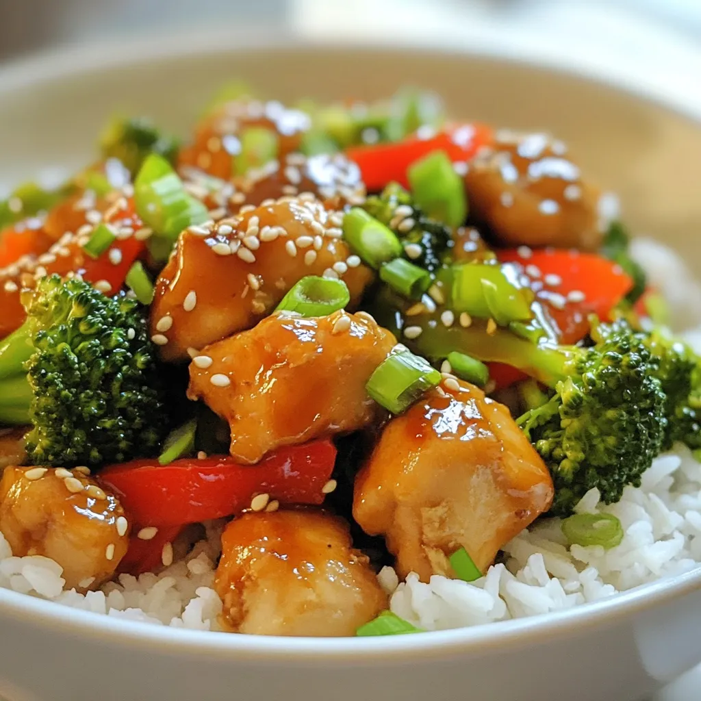 - Chicken: 2 chicken breasts, sliced into bite-sized pieces - Vegetables: 2 cups broccoli florets, 1 red bell pepper, sliced, 1 tablespoon minced garlic, 1 teaspoon grated ginger - Sauce Ingredients: 3 tablespoons low-sodium soy sauce, 1 tablespoon sesame oil, 1 tablespoon honey, 1 teaspoon cornstarch mixed with 2 tablespoons water - Additional Garnishes: Salt and pepper to taste, cooked rice or quinoa for serving, sesame seeds, and green onions for garnish Gathering the right ingredients makes cooking so much easier. I love using fresh chicken and bright veggies. The chicken breasts give great flavor and protein. Broccoli adds crunch and health. The red bell pepper makes the dish colorful. For the sauce, the soy sauce adds umami. Honey brings sweetness, while sesame oil gives depth. Mixing cornstarch with water thickens the sauce. This blend coats the chicken and veggies perfectly. You can serve this meal over rice or quinoa. It makes everything more filling. Adding sesame seeds and green onions on top makes it look nice. This dish is quick, simple, and full of flavor! {{ingredient_image_1}} Cooking the Chicken Start by heating a large skillet over medium-high heat. Add one tablespoon of sesame oil. Next, toss in 2 sliced chicken breasts. Season with salt and pepper. Cook for about 5-7 minutes. You want the chicken to turn golden and be cooked through. Adding Aromatics Once the chicken is ready, stir in 1 tablespoon of minced garlic and 1 teaspoon of grated ginger. This adds a lovely flavor. Cook for about 30 seconds until their scents fill the kitchen. Incorporating Vegetables Now it's time to add the veggies. Toss in 2 cups of broccoli florets and 1 sliced red bell pepper. Stir-fry these for about 3-4 minutes. You want them tender but still crisp. Making the Sauce In a small bowl, mix together 3 tablespoons of low-sodium soy sauce and 1 tablespoon of honey. Pour this sauce over the chicken and vegetables in the skillet. Stir well to coat everything evenly. Final Assembly To thicken the sauce, add 1 teaspoon of cornstarch mixed with 2 tablespoons of water. Stir this in and cook for another 2-3 minutes. Adjust the seasoning as needed. Finally, remove from heat and garnish with sesame seeds and sliced green onions. Serve the chicken and broccoli over rice or quinoa for a complete meal. Ensuring Chicken is Tender To keep chicken tender, choose fresh chicken breasts. Slice them into small pieces. This helps them cook evenly. Season lightly with salt and pepper. Only cook until golden and no longer pink. Avoid overcooking, as that makes the chicken tough. Perfecting Vegetable Texture For the best texture, use fresh broccoli and red bell pepper. Stir-fry them quickly in hot oil. Cook for about 3-4 minutes. You want them tender but still a bit crisp. This keeps their bright color and crunch. Thickening the Sauce To thicken the sauce, mix cornstarch with water until smooth. Add it to the skillet after the sauce. Stir well and cook for 2-3 minutes. This gives a nice glaze to the chicken and veggies. Best Accompaniments Serve the chicken and broccoli over cooked rice or quinoa. This adds a nice base. You can also use cauliflower rice for a lower-carb option. It soaks up the sauce well and makes each bite tasty. Garnishing Ideas For a pretty finish, sprinkle sesame seeds on top. Add sliced green onions for color and flavor. These little touches make your dish look and taste gourmet. Enjoy the bright flavors and textures! Pro Tips Marinate for Flavor: For even more flavorful chicken, marinate the sliced chicken breasts in soy sauce, garlic, and ginger for at least 30 minutes before cooking. Veggie Variations: Feel free to substitute or add other vegetables such as snap peas, carrots, or mushrooms for a colorful and nutritious dish. Perfectly Cooked Broccoli: To keep the broccoli vibrant and crisp, blanch it in boiling water for 1-2 minutes before adding to the skillet. Garnishing Tips: For a burst of freshness, add a squeeze of lime juice over the dish before serving, enhancing the flavors beautifully. {{image_2}} Chicken Alternatives You can swap chicken for other meats. Try turkey or pork for a different taste. If you want a lighter option, use shrimp. These choices will change the flavor, but they will still be delicious. Vegetable Options Feel free to mix in your favorite veggies. Snap peas, carrots, or bell peppers work great. You can even add mushrooms for an earthy flavor. Get creative and use what you have. This dish is very flexible! Gluten-Free Version To make this meal gluten-free, use tamari instead of soy sauce. Tamari has a similar taste but is safe for gluten-free diets. Always check labels to ensure there are no hidden gluten ingredients. Vegan Adaptation For a vegan twist, skip the chicken and use tofu or tempeh. Both options absorb flavors well and offer protein. Replace honey with maple syrup for sweetness. This keeps the dish plant-based while still tasting great. Refrigeration Guidelines You can store leftovers in the fridge. Use an airtight container. This keeps the dish fresh. It lasts for about 3-4 days. Make sure to cool it down first. This helps prevent bacteria growth. Freezing Tips For longer storage, freeze the chicken and broccoli mix. Place it in a freezer-safe bag or container. Remove as much air as possible. This helps avoid freezer burn. It is best to use within 2-3 months. When ready to eat, thaw in the fridge overnight. Best Methods for Reheating To reheat, use the stovetop for best results. Place the dish in a skillet over medium heat. Add a splash of water or broth to keep it moist. Stir often until heated through. You can also use a microwave. Heat in short bursts, stirring in between. This ensures even heating. How long does it take to cook chicken in a skillet? It takes about 5 to 7 minutes to cook chicken in a skillet. You want the chicken to be golden and cooked through. Always check that there is no pink inside the pieces. This way, you ensure it is safe