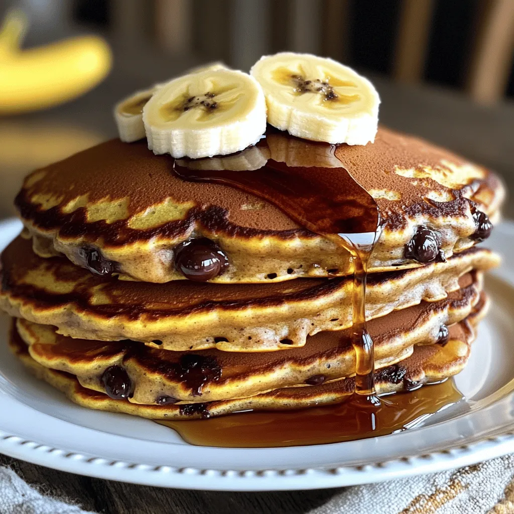 Serving pancakes well makes them even more fun. Stack your pancakes high on a plate. Add some extra chocolate chips on top. Place banana slices around the stack for color.