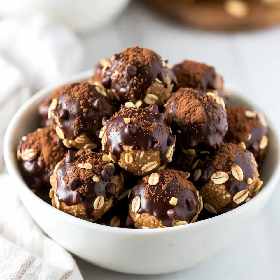 Delicious and nutritious energy bites made with oats, peanut butter, and dark chocolate.