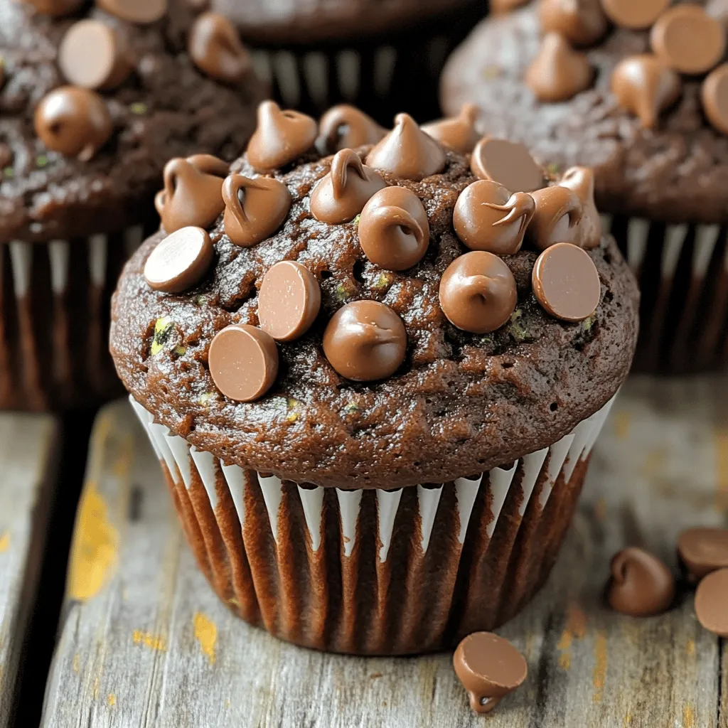 To make these delightful chocolate zucchini muffins, you'll need the following items: - 1 medium zucchini, grated (about 1 cup) - 1 cup all-purpose flour - 1/2 cup unsweetened cocoa powder - 1 teaspoon baking soda - 1/2 teaspoon baking powder - 1/2 teaspoon salt - 1 cup granulated sugar - 1/2 cup brown sugar, packed - 1/2 cup vegetable oil - 2 large eggs - 1 teaspoon vanilla extract - 1/2 cup semi-sweet chocolate chips (plus extra for topping) Each ingredient plays an important role in making the muffins moist and delicious: - Zucchini: Adds moisture without altering the flavor. - Flour: Provides structure to the muffins. - Cocoa Powder: Gives the muffins their rich chocolate taste. - Baking Soda and Baking Powder: These leavening agents help the muffins rise. - Sugars: Granulated and brown sugars add sweetness and moisture. - Vegetable Oil: Keeps the muffins tender and moist. - Eggs: Bind the ingredients and add richness. - Vanilla Extract: Enhances the overall flavor. - Chocolate Chips: Add melty chocolate goodness in every bite. You can customize this recipe if you need to. Here are some simple swaps: - Zucchini: Substitute with grated carrots for a different flavor. - All-Purpose Flour: Use whole wheat flour for added fiber. - Cocoa Powder: Try Dutch-processed cocoa for a milder taste. - Sugars: Use coconut sugar for a lower glycemic index. - Vegetable Oil: Swap with melted coconut oil for a unique flavor. - Eggs: Use flax eggs (1 tablespoon flaxseed meal + 2.5 tablespoons water) for a vegan option. You can find the full recipe to guide you through the steps! Start by gathering your ingredients. You need: - 1 medium zucchini, grated (about 1 cup) - 1 cup all-purpose flour - 1/2 cup unsweetened cocoa powder - 1 teaspoon baking soda - 1/2 teaspoon baking powder - 1/2 teaspoon salt - 1 cup granulated sugar - 1/2 cup brown sugar, packed - 1/2 cup vegetable oil - 2 large eggs - 1 teaspoon vanilla extract - 1/2 cup semi-sweet chocolate chips (plus extra for topping) Preheat your oven to 350°F (175°C). Line a muffin tin with paper liners or grease it well. In a medium bowl, mix the flour, cocoa powder, baking soda, baking powder, and salt. Whisk it all together and set this bowl aside. In a large bowl, whisk the granulated sugar, brown sugar, and vegetable oil until smooth. Then, add the eggs one at a time. Mix well after each egg. Stir in the vanilla until it blends in completely. Now, fold the grated zucchini into this mixture, making sure it’s spread out evenly. Next, take the dry ingredients and add them to the wet mixture. Stir gently until just combined. Be careful not to overmix; this keeps the muffins light. Now, fold in the chocolate chips, saving a few for topping later. Spoon the batter evenly into the muffin cups, filling each about two-thirds full. Sprinkle the reserved chocolate chips on top of each one. Bake in your preheated oven for 18-20 minutes. To check for doneness, insert a toothpick into the center. It should come out clean or with a few crumbs attached. Keep an eye on the muffins as they bake. Start checking them at 18 minutes. If the toothpick comes out dirty, give them a few more minutes. Overbaking can make them dry, which we want to avoid. Once they are done, let them cool in the pan for about 5 minutes. Then, move them to a wire rack to cool completely. Now you have moist and delicious chocolate zucchini muffins! Check out the Full Recipe for more details. When baking chocolate zucchini muffins, a few common mistakes can happen. First, do not skip squeezing the grated zucchini. Zucchini holds a lot of water, and too much moisture can ruin your muffins. Second, avoid overmixing the batter. This can make the muffins tough instead of soft. Third, do not forget to check your oven temperature. An oven that is too hot can cause the muffins to bake too quickly on the outside while staying raw inside. To ensure your muffins are moist, use fresh zucchini. Old zucchini may be drier and less flavorful. I recommend using oil instead of butter. Oil keeps them soft and moist longer. Also, consider adding a little more sugar for sweetness. A touch of brown sugar adds moisture, too. Lastly, let the muffins sit in the pan for a few minutes before transferring them to a wire rack. This helps them stay soft. To boost the flavor, try adding a pinch of cinnamon or nutmeg. These spices complement chocolate well. You can also mix in nuts or seeds for crunch. Chopped walnuts or pecans work nicely. For a richer taste, use dark chocolate chips instead of semi-sweet. If you want a fun twist, add a splash of espresso or coffee to the batter. This enhances the chocolate flavor without being too strong. For the full recipe, you can check the complete instructions above. {{image_2}} You can make these muffins healthier. Try using whole wheat flour instead of all-purpose flour. Whole wheat flour adds fiber and nutrients. You can also cut down on sugar. Use half a cup of granulated sugar and a half cup of unsweetened applesauce. This swap keeps muffins sweet but lowers calories. Add new tastes to your muffins for fun! Mix in nuts like walnuts or pecans for crunch. You can also add spices like cinnamon or nutmeg for warmth. Try adding a splash of espresso for a coffee flavor. Each choice brings a new twist to this treat. If you need gluten-free muffins, use gluten-free flour blends. These blends work well in most recipes. You can also try almond flour for a different taste. Just make sure to check the mix for the right texture. This way, everyone can enjoy chocolate zucchini muffins! For the complete recipe, visit the [Full Recipe]. To keep your chocolate zucchini muffins fresh, store them in an airtight container. This helps keep moisture in while preventing them from drying out. You can also line the container with a paper towel. This absorbs extra moisture and keeps the muffins soft. Place the muffins at room temperature for up to three days. For longer storage, you might want to consider
