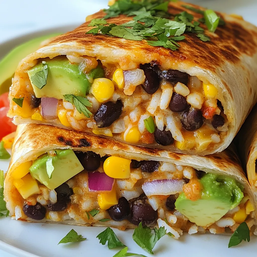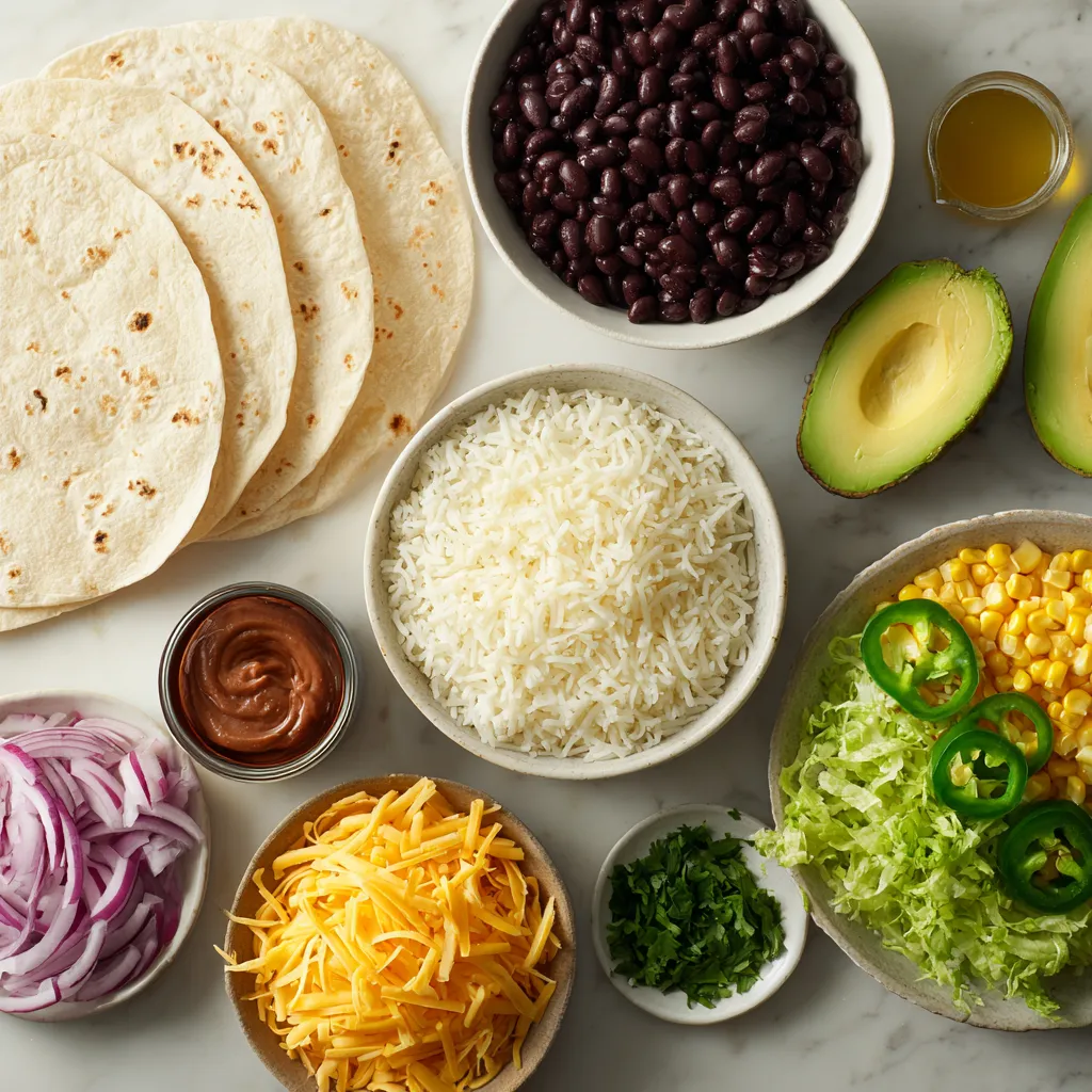 A delicious and cheesy wrap filled with rice, beans, and fresh vegetables, perfect for a quick meal.
