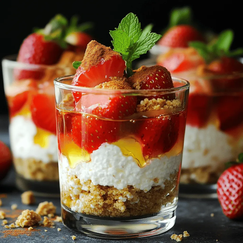 Start with the cottage cheese mixture at the bottom. This creates a creamy base. Next, add the graham cracker mixture for a crunch. After that, layer the sliced strawberries. Repeat these layers until your glass is full. Finish with strawberries on top. Add mint leaves for a pop of color. This looks beautiful and appetizing!
