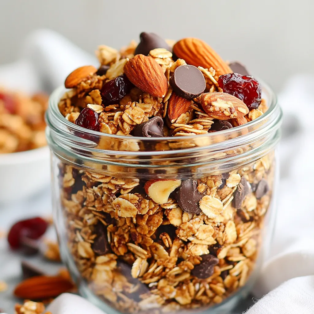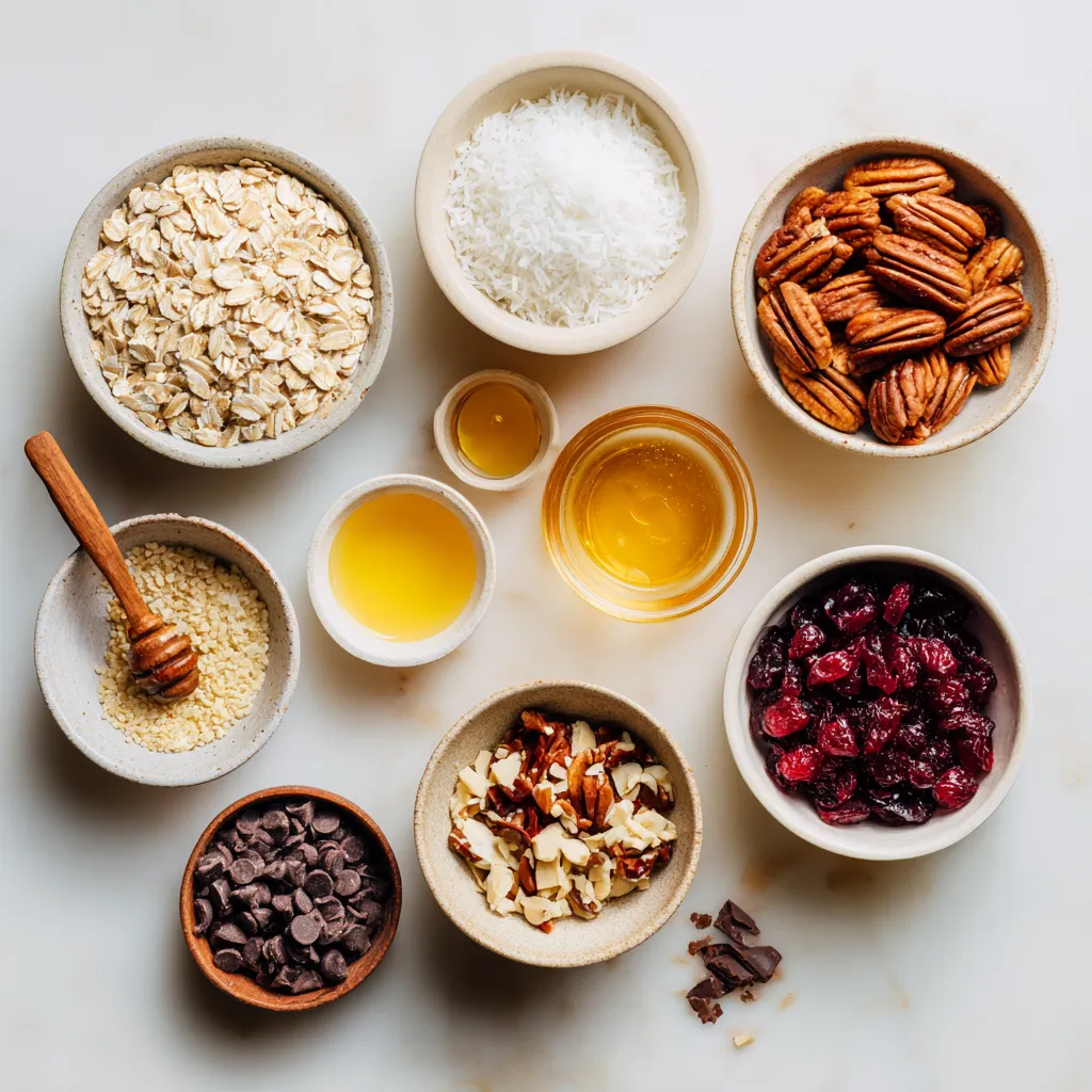 These ingredients create a perfect blend of flavors and textures. The oats make the base, while the nuts add crunch. Dried cranberries give a sweet-tart flavor, and dark chocolate chips add richness.