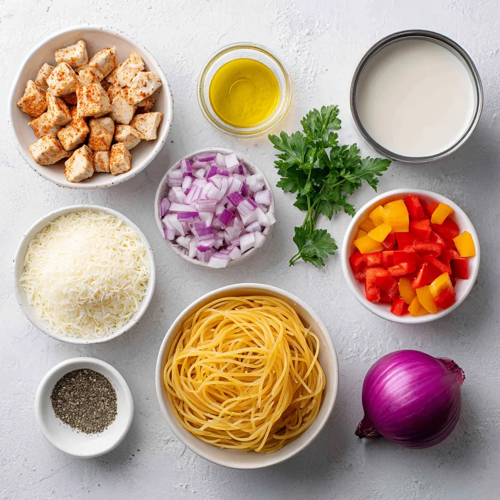 To make a tasty creamy Cajun chicken spaghetti, gather these simple ingredients: