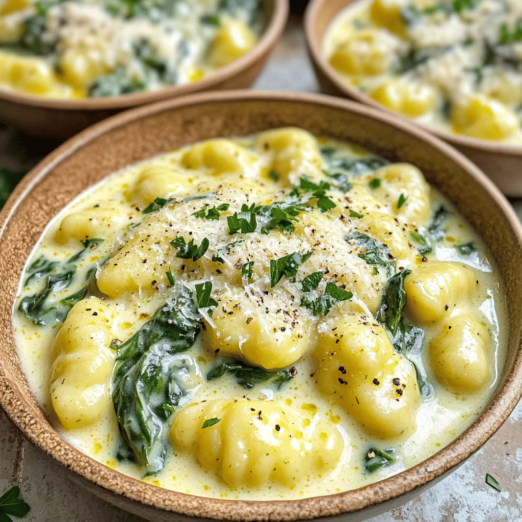 Use fresh spinach for the best flavor. Look for bright green leaves. Aged Parmesan gives a richer taste. Choose heavy cream instead of light cream for a thicker sauce. Ensure the garlic is fresh for a strong aroma. If using store-bought gnocchi, pick a high-quality brand for better texture.