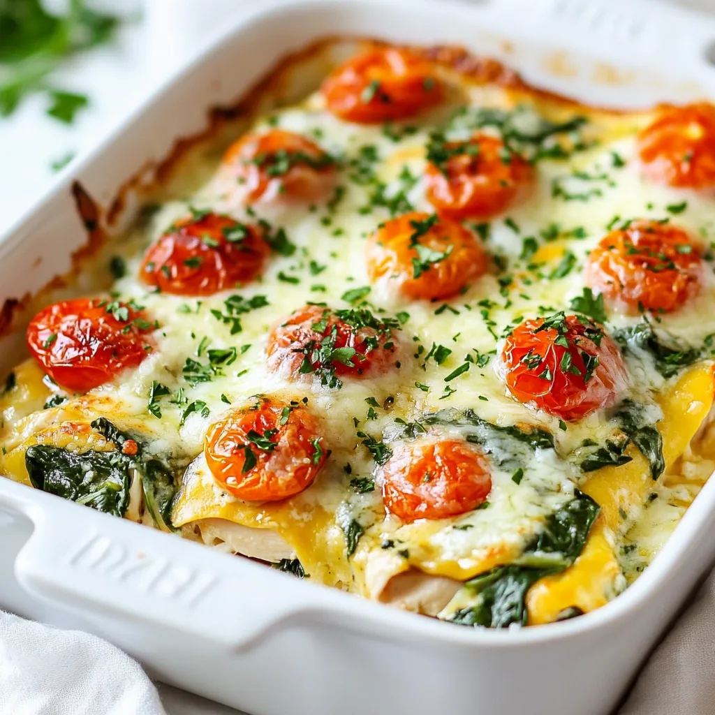 - Nutritious Ingredients: Packed with chicken, spinach, and tomatoes, this casserole is a great way to get your protein and veggies in one delicious dish.