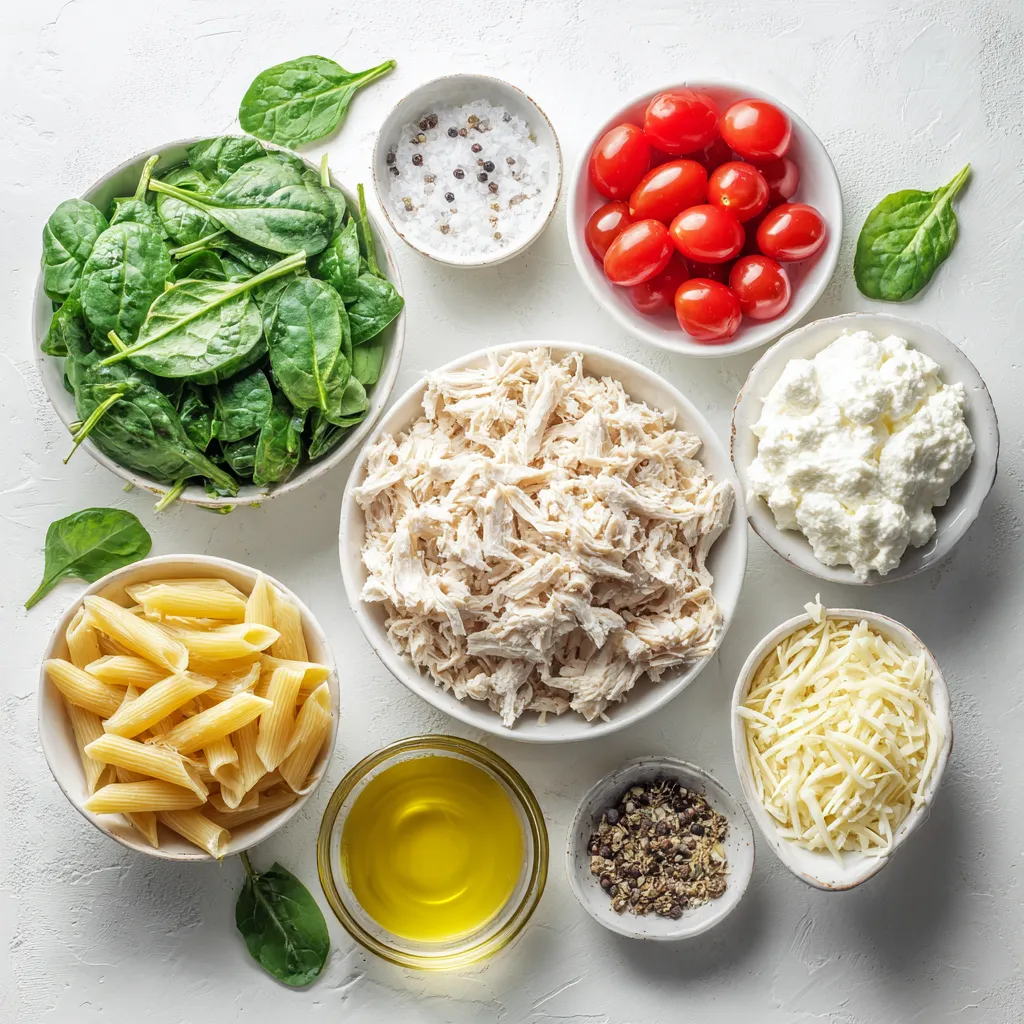 You can swap some ingredients if needed. For the chicken, try cooked turkey or even tofu for a plant-based option. You can use frozen spinach if fresh isn’t available, just thaw and drain it well. Cream cheese can be replaced with Greek yogurt for a lighter option. If you want a different cheese, try cheddar or gouda instead of mozzarella. For pasta, any shape you like will work, such as fusilli or farfalle.