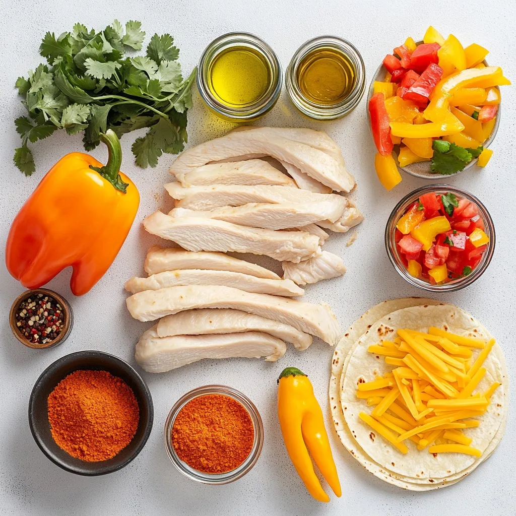 The chicken breasts are the star of this dish. Make sure they are fresh for the best flavor. Choose any bell pepper you like; each adds its own sweet taste. Onions bring a great crunch and flavor. Flour tortillas are perfect for wrapping around the tasty filling.