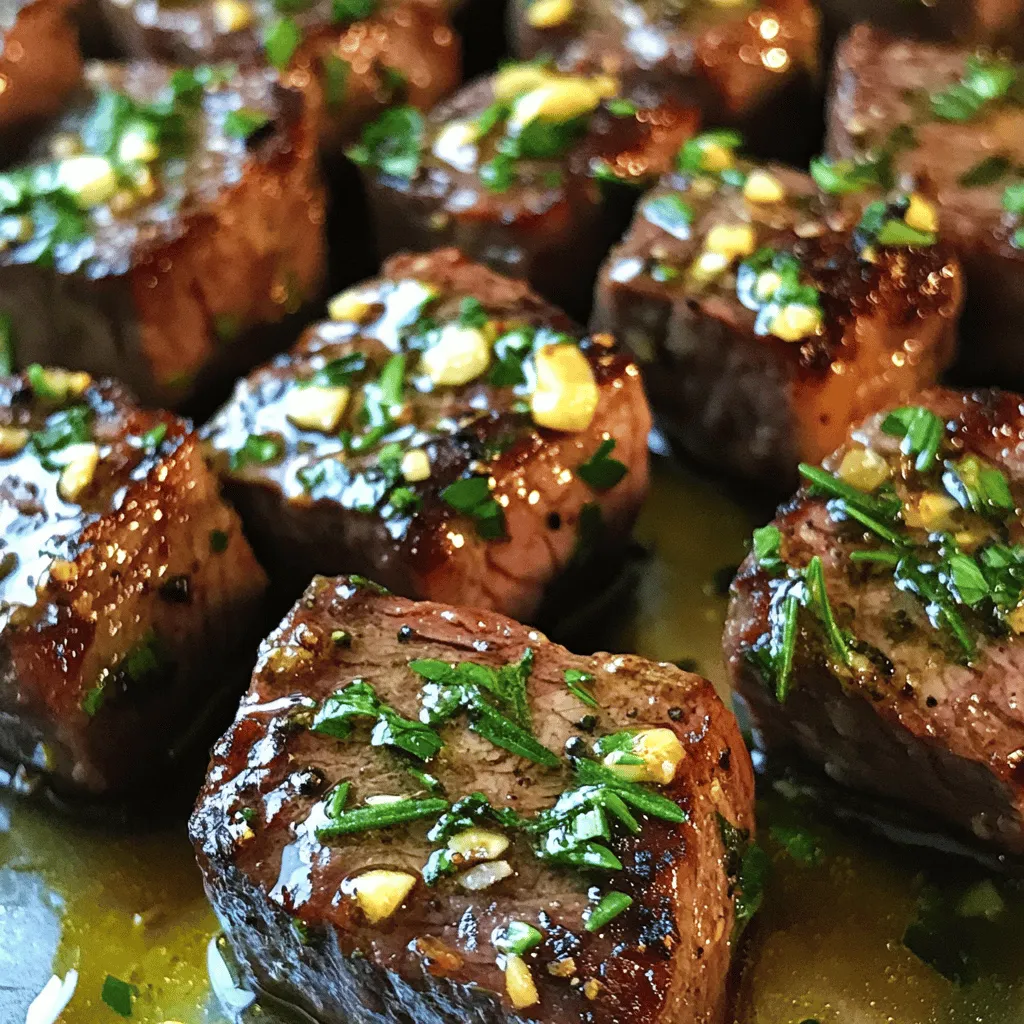 ![- 1 lb sirloin steak, cut into 1-inch cubes - 4 tablespoons unsalted butter - 4 cloves garlic, minced For the best flavor, I always choose sirloin steak. It’s tender and easy to work with. Unsalted butter adds richness, while fresh garlic gives a strong, aromatic kick. - 1 teaspoon fresh rosemary, chopped - 1 teaspoon fresh thyme, chopped - Salt and pepper to taste - 2 tablespoons olive oil Fresh herbs like rosemary and thyme brighten the dish. Salt and pepper bring out the steak’s natural taste. Olive oil helps cook the meat evenly and adds a light flavor. - Fresh parsley - Serving suggestions (e.g., with sides) I like to add fresh parsley for color and freshness. These steak bites pair well with sides like mashed potatoes or a crisp salad. For the full recipe, check [Full Recipe]. Start by seasoning the steak cubes with salt and pepper. Use enough to coat each piece well. This step adds flavor right from the start. Let the seasoned steak rest for about 15 minutes. This allows the meat to come to room temperature. Room temperature steak cooks more evenly. It also helps achieve a nice crust when searing. Heat a large skillet over medium-high heat. Add olive oil once the skillet is hot. Place the steak cubes in a single layer. Avoid crowding the pan to ensure even cooking. Sear each side for 2-3 minutes. This timing gives a nice browning. For medium-rare, aim for an internal temperature of 130°F (54°C). Once done, remove the steak from the skillet and set it aside. In the same skillet, lower the heat to medium. Add the unsalted butter and minced garlic. Be careful with the heat; burnt garlic tastes bitter. Stir the mixture for 1-2 minutes. You want the garlic fragrant but not brown. Next, add chopped rosemary and thyme. These herbs bring out a rich flavor. Combine everything well, then return the steak bites to the skillet. Toss them in the garlic butter until well coated. Cook for another minute to warm the steak through. For the full recipe, check out the detailed instructions above. - Choosing the right cut of meat: Sirloin works great for steak bites. It is tender and has good flavor. You can also try ribeye or filet mignon for a richer taste. Always pick fresh meat for the best outcome. - Importance of an accurate thermometer: Use a meat thermometer to check doneness. For medium-rare, aim for 130°F (54°C). This helps you avoid overcooking the meat, keeping it juicy and tender. - Experimenting with spices and herbs: Don’t be afraid to play with flavors. Add chili flakes for heat or smoked paprika for depth. Fresh herbs like parsley or basil can also brighten the dish. - Using additional sauces for flavor depth: A drizzle of balsamic glaze or a spoonful of Dijon mustard can add a nice kick. You can mix these sauces into the garlic butter for a unique twist. - Plating suggestions for aesthetics: Use a clean white plate to showcase the steak bites. Arrange them in a circle or stack them for height. Drizzle some garlic butter around the edges for a visual pop. - Pairing with complementary side dishes: Serve with roasted veggies or a fresh salad. These sides balance the richness of the steak and add color to your plate. For a fun twist, try serving with garlic bread for extra flavor! For the full recipe, check out the Garlic Butter Steak Bites. {{image_2}} You can enjoy garlic butter steak bites with many steak cuts. Ribeye is a great choice. It has a good amount of fat. This makes it tender and juicy. Filet mignon is another option. It is very tender and mild in flavor. Flank steak works well too. It has a strong beef taste and is great for marinating. You can use any of these cuts to make your dish unique and tasty. Want to spice things up? Try adding chili flakes for some heat. This will give your steak bites a nice kick. You can also mix in different herbs. Basil, oregano, or parsley can change the taste. Fresh herbs add brightness and flavor. Feel free to get creative and find your favorite mix! You can cook garlic butter steak bites in different ways. Grilling gives a great smoky flavor. Just make sure to keep the heat high. If you prefer, you can also use a skillet. It gives a nice sear and is easy to control. Baking in the oven is another method. Preheat your oven to 400°F (204°C). Place the seasoned steak bites on a baking sheet. Bake for about 10-12 minutes, or until they are cooked to your liking. This method is simple and requires less attention. Each method gives a different texture and flavor. Choose what works best for you! For the full recipe, check out the [Full Recipe]. To keep your garlic butter steak bites fresh, follow these tips: - Allow the steak bites to cool completely before storing. - Place them in an airtight container to prevent moisture loss. - Store in the fridge for up to 3 days. For longer storage, you can freeze the leftovers: - Wrap the steak bites tightly in plastic wrap. - Place them in a freezer-safe bag or container. - They can last up to 3 months in the freezer. When reheating your steak bites, you have two main options: stovetop or microwave. Stovetop: - Heat a skillet over medium-low heat. - Add a little olive oil or butter. - Place the steak bites in the skillet, turning them often. - This method keeps the steak tender and flavorful. Microwave: - Place steak bites in a microwave-safe dish. - Cover with a damp paper towel to retain moisture. - Heat in short bursts, stirring in between. - Be careful not to overcook them, or they may get tough. Your steak bites can last in the fridge for about 3 days. After that, they may spoil. Signs of spoilage include: - A sour smell or off odor. - Changes in color or texture. - Slimy or sticky surface. If you notice any of these signs, it's best to throw them away. Enjoy your garlic butter steak bites while they are fresh! For the full recipe, check the earlier section. For Garlic Butter Steak Bites, I recommend using sirloin steak. Sirloin is tender, flavorful, and affordable. It cooks quickly, mak