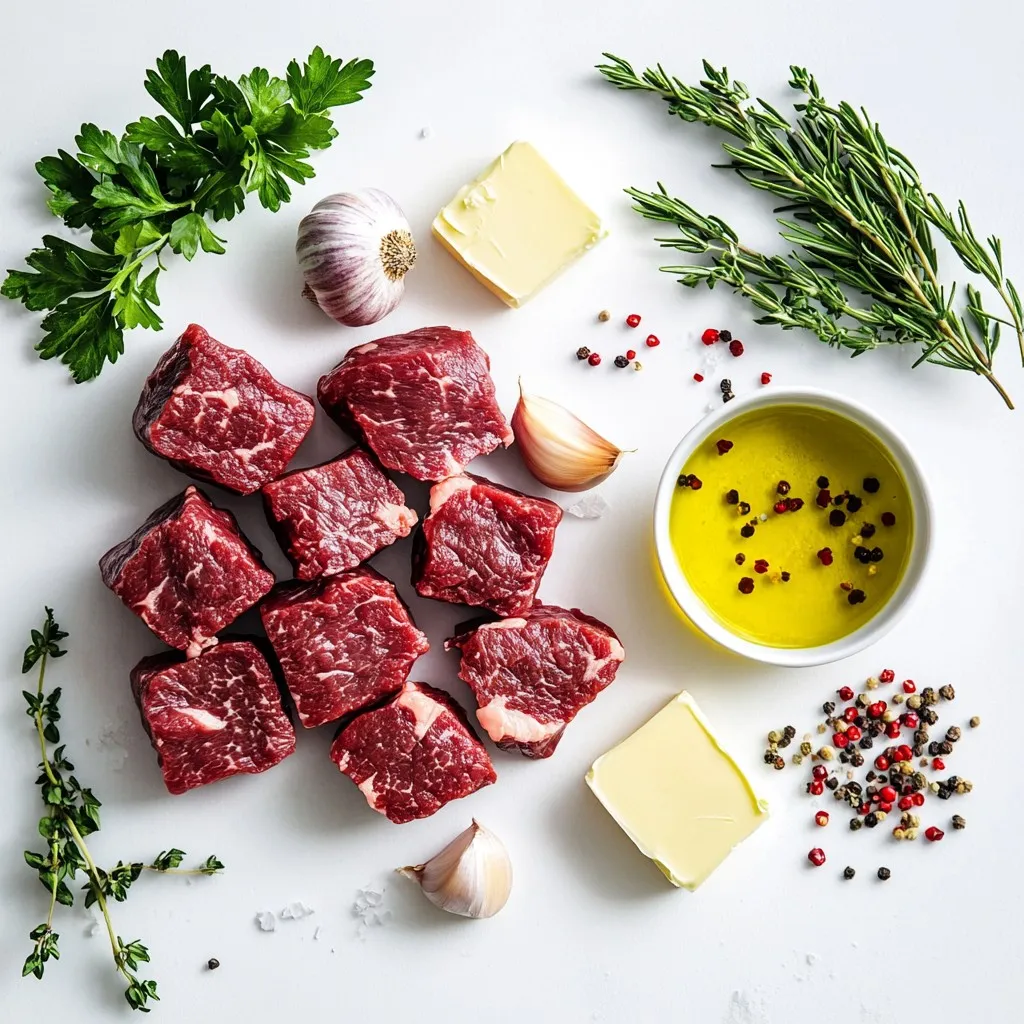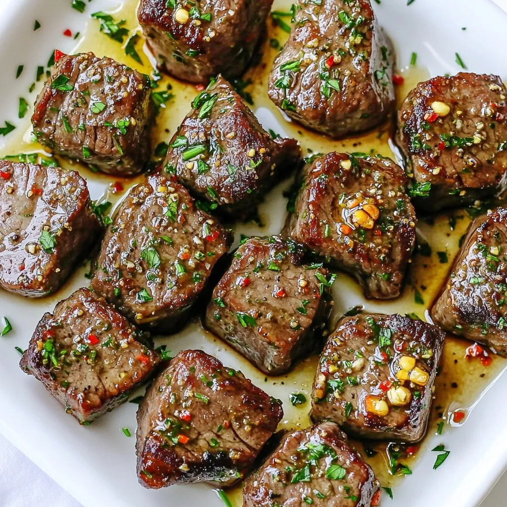 - 1 lb sirloin steak, cut into bite-sized cubes - 4 tablespoons unsalted butter - 4 cloves garlic, minced - 1 tablespoon fresh rosemary, chopped (or 1 teaspoon dried rosemary) - 1 tablespoon fresh parsley, chopped - Salt and pepper - 1 tablespoon olive oil - Optional: Red pepper flakes for heat In this recipe, I use sirloin steak for its rich flavor and tenderness. Cut it into bite-sized cubes to ensure even cooking. This makes it easy to sear and enjoy. I recommend using unsalted butter to control the salt level. It also gives the steak bites a nice, creamy texture. Garlic is a star in this dish. Its strong flavor pairs well with the meat. I use four cloves, but feel free to adjust this to your taste. Fresh herbs, like rosemary and parsley, add a burst of color and flavor. They elevate the dish from simple to gourmet. Seasoning is key. I use salt and pepper to enhance the steak's natural taste. Olive oil helps the steak sear nicely in the pan. If you want a little heat, red pepper flakes add a nice kick without overwhelming the dish. All these ingredients come together to create a savory and mouth-watering dish. Remember, fresh ingredients make a big difference in flavor. Enjoy your time cooking! {{ingredient_image_1}} First, pat the steak cubes dry with paper towels. This helps the meat sear well. Then, season the cubes with salt and pepper. Make sure to season all sides to get great flavor. Next, cut the sirloin steak into bite-sized cubes. Aim for about one-inch pieces so they cook evenly. Now, heat a large skillet over medium-high heat and add olive oil. You want the oil to shimmer, which means it’s hot enough. Add the steak cubes in a single layer. Don't overcrowd the pan; it’s better to work in batches. Sear the first side for about 2-3 minutes. This creates a nice crust. After that, flip the steak bites to cook the other side. Cook for another 2-3 minutes for medium-rare. Adjust the time based on how you like your steak. Once done, remove the steak bites from the skillet and set them on a plate. Next, let’s make the garlic butter sauce. In the same skillet, lower the heat to medium. Add the unsalted butter and let it melt. Once melted, add minced garlic and chopped rosemary. Sauté for about one minute until you smell that wonderful aroma. Be careful not to burn the garlic; it cooks quickly. Now, return the steak bites to the skillet. Toss them in the garlic butter sauce to coat them well. If you like some heat, sprinkle in red pepper flakes. Finally, remove the skillet from the heat. Garnish with chopped parsley for a fresh touch. Toss lightly to mix everything. Now, you’re ready to serve these delicious garlic butter steak bites! To make your garlic butter steak bites shine, focus on a great sear. Start by patting the steak cubes dry. This step helps the meat brown nicely. Season the cubes with salt and pepper on all sides. Make sure your skillet is hot before adding the steak. This helps create a crust. Sear the steak for about 2-3 minutes without moving it. Flip the bites and cook for another 2-3 minutes for medium-rare. Adjust the time based on how you like your steak. Presentation matters, even for simple dishes. Arrange the steak bites on a platter. Drizzle any leftover garlic butter from the pan over the top. This adds flavor and looks great. Garnish with fresh parsley for a pop of color. Use toothpicks for easy eating. You can serve these bites with crusty bread, roasted veggies, or a fresh salad. Each of these pairs well with the rich garlic butter. Enjoy your meal! Pro Tips Dry the Steak: Patting the steak cubes dry with paper towels before seasoning helps achieve a perfect sear, resulting in a flavorful crust. Use a Hot Pan: Ensure your skillet is hot enough before adding the steak. A hot pan helps create a beautiful caramelized crust without overcooking the meat. Rest for Juiciness: Let the steak bites rest for a few minutes after cooking to allow the juices to redistribute, ensuring every bite is juicy and tender. Customize the Heat: If you enjoy a bit of spice, don't hesitate to add red pepper flakes or even a dash of hot sauce to the garlic butter sauce for an extra kick. {{image_2}} You can make garlic butter steak bites even better by adding more flavor. Here are two simple ways to spice things up: - Adding different herbs: You can try using thyme or oregano. These herbs add unique tastes. Fresh herbs give a brighter flavor while dried herbs work too. Just use a bit less dried than fresh. - Incorporating other spices: Want a kick? Use red pepper flakes for heat. You can also add smoked paprika for a rich flavor. It will give the bites a nice, warm depth. If you're not in the mood for steak, there are tasty options. Here’s how you can switch it up: - Using different cuts of steak: You can use ribeye or tenderloin. They work well for this recipe. Each cut has its flavor and tenderness. Just adjust cooking times as needed. - Substituting with chicken or shrimp: Chicken breast or shrimp can replace steak. Chicken should be cooked until golden brown. Shrimp cooks fast, just a minute or two per side. Both options soak up the garlic butter sauce well. These variations let you explore new flavors and keep dinner exciting! To keep your garlic butter steak bites fresh, store them in the fridge. Place them in an airtight container. This will help keep the steak moist and flavorful. If you use a glass container, it helps keep the taste. You can also use plastic containers, but glass is better for long-term storage. For best results, eat the leftovers within three days. When it’s time to reheat your steak bites, use a skillet. Heat it over medium-low heat. Add a little butter to the pan to keep the steak moist. Stir gently to warm them without cooking further. Avoid using the microwave, as it can make the steak dry and tough. If you must use the microwave, cover it with a damp paper towel. This will help keep moisture in. Enjoy your tasty bites like they are fres