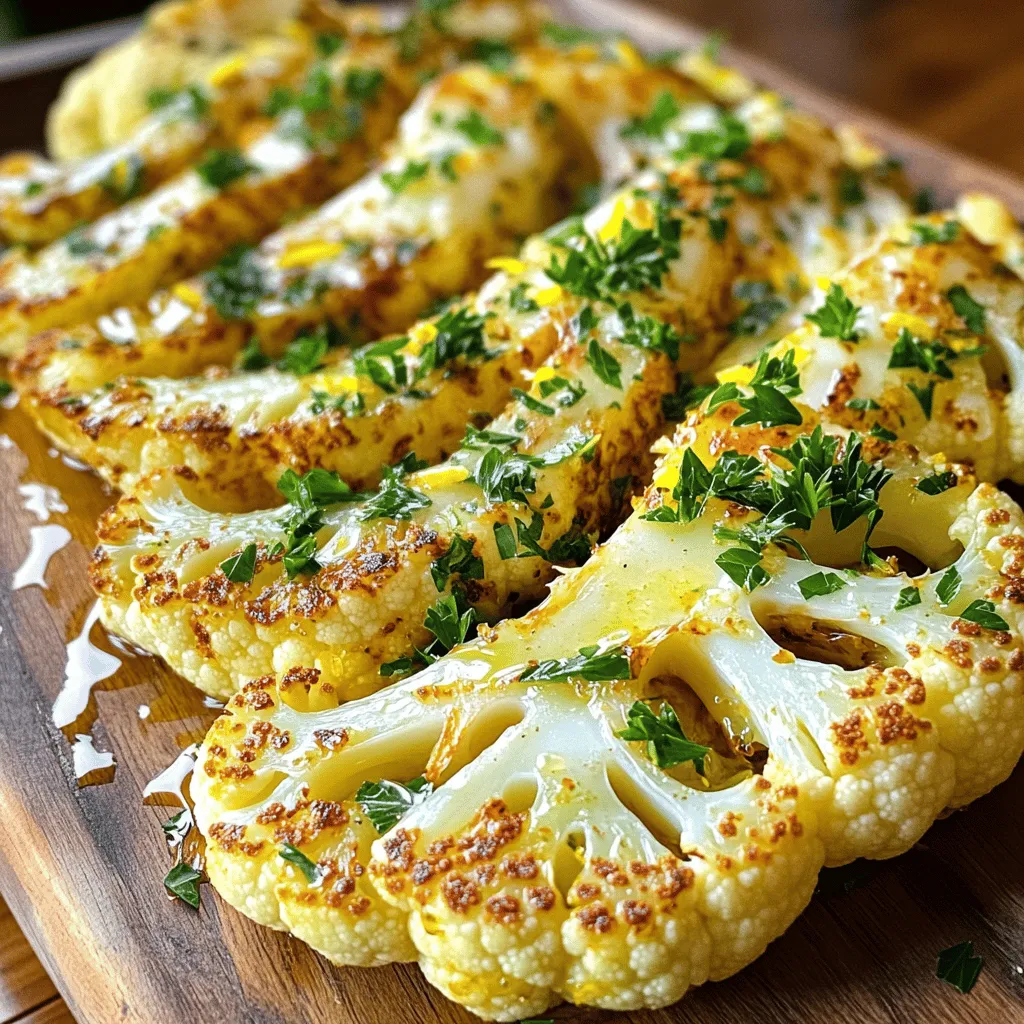 To make Garlic Lemon Roasted Cauliflower Steaks, you need a few key ingredients. First, the large head of cauliflower is your star. It gives you thick, meaty slices that hold up well during cooking. The garlic adds depth and a savory touch. I love using four cloves, but feel free to adjust based on your taste.
