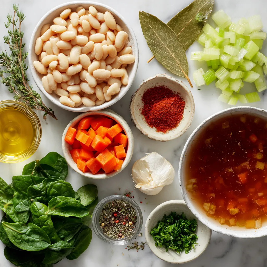 To make high protein white bean soup, gather these ingredients first. The white beans serve as the star. They bring protein and creaminess. My favorites are cannellini or great northern beans because they are soft and mild.
