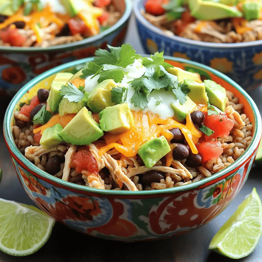 To make your Instant Pot chicken burrito bowls great, think about the rice. Brown rice needs more time than white rice. If you want white rice, cut the cooking time to 10 minutes. For added flavor, spices are key. Use chili powder, cumin, garlic powder, and onion powder. They bring warmth and depth to your dish. You can also add a pinch of smoked paprika for a smoky touch.