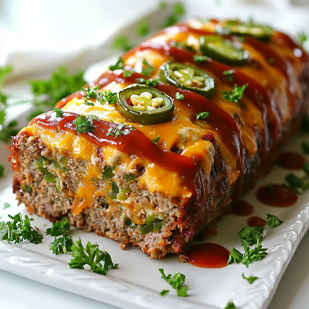 A delicious meatloaf infused with the flavors of jalapeño poppers, featuring a cheesy topping.