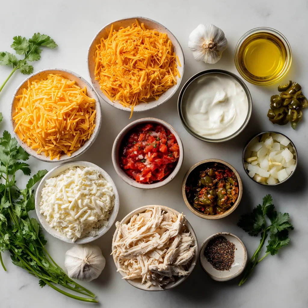 You need simple, fresh ingredients for this casserole. The chicken gives protein, while the cheese adds creamy goodness. The tomatoes and chilies bring in a nice flavor. You can use store-bought taco seasoning or make your own to fit your taste.