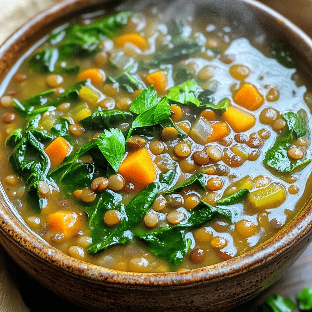 After the lentils are done cooking, stir in the fresh spinach. Cook for an additional 5 to 7 minutes. You want the spinach to wilt and blend into the soup. Now, season your soup. Add salt, pepper, and lemon juice to taste. This adds brightness to the dish. If you like a creamier texture, blend a portion of the soup. Mix it back into the pot for a smooth finish. Serve your soup hot and garnish with fresh parsley.
