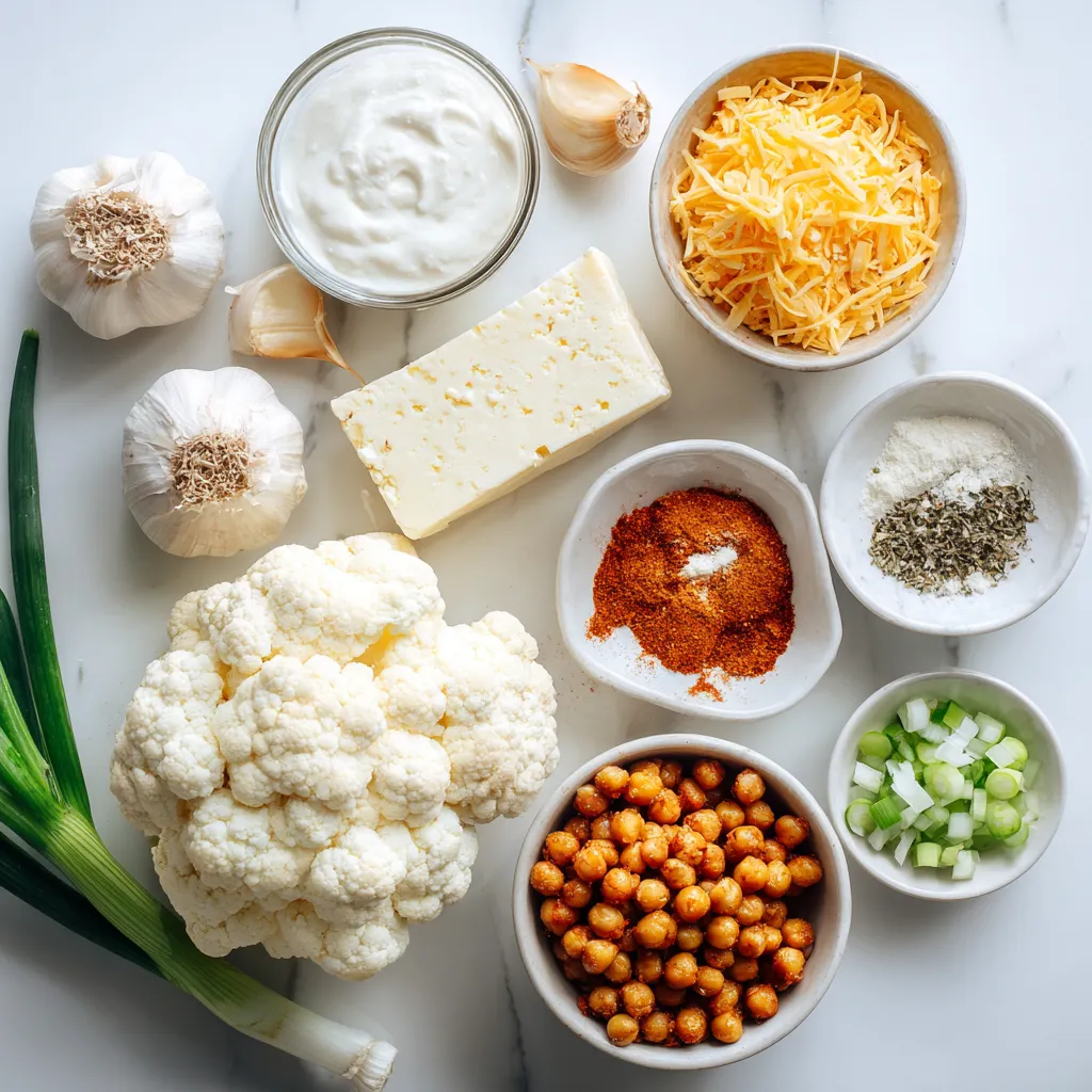 The main ingredients for Loaded Cauliflower Soup create a creamy base. Cauliflower gives the soup its rich texture. The onion and garlic add depth and flavor. Vegetable broth keeps it light and healthy. Almond milk makes the soup creamy without dairy. Cheddar cheese adds a sharp taste. Cream cheese helps to blend everything smoothly.
