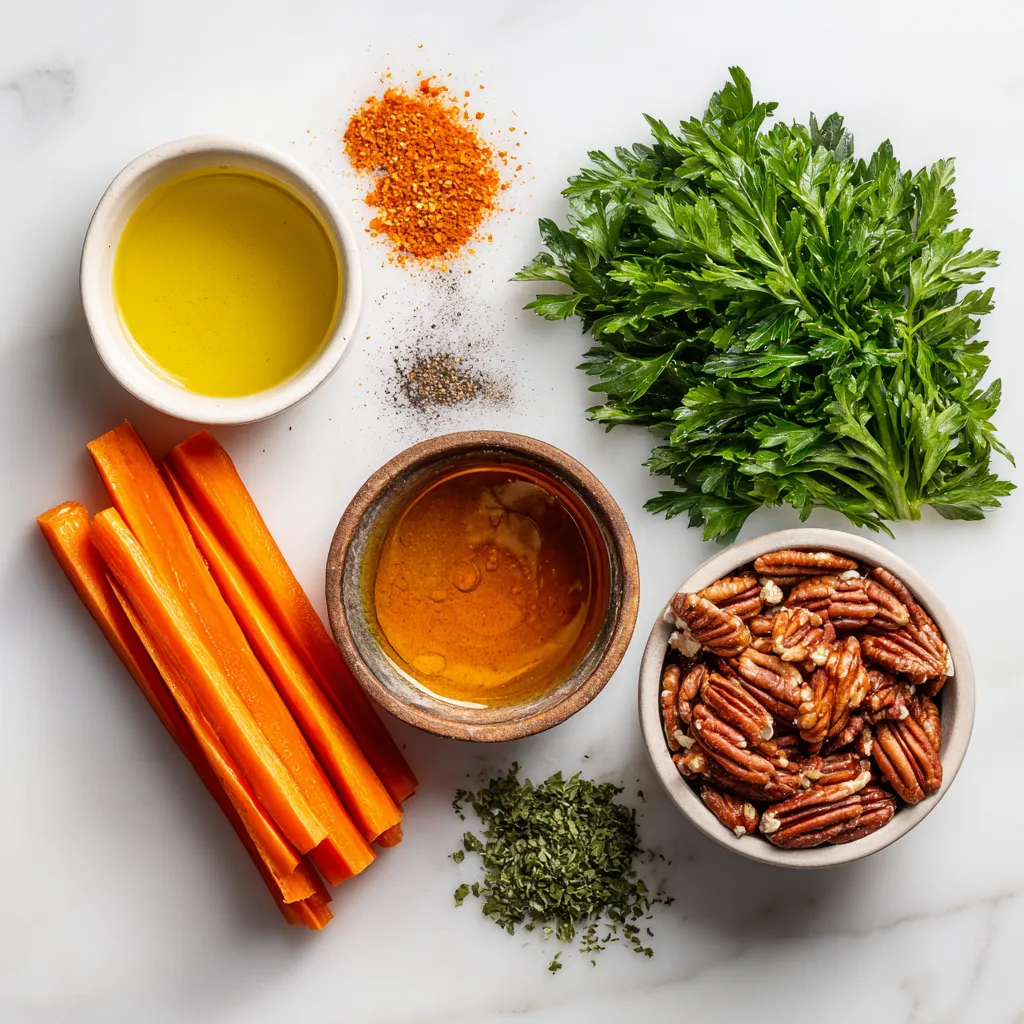 The ingredients for Maple Pecan Roasted Carrots are simple yet full of flavor. Start with fresh, medium carrots. These carrots should be peeled and sliced into sticks. You want them to be even for cooking.