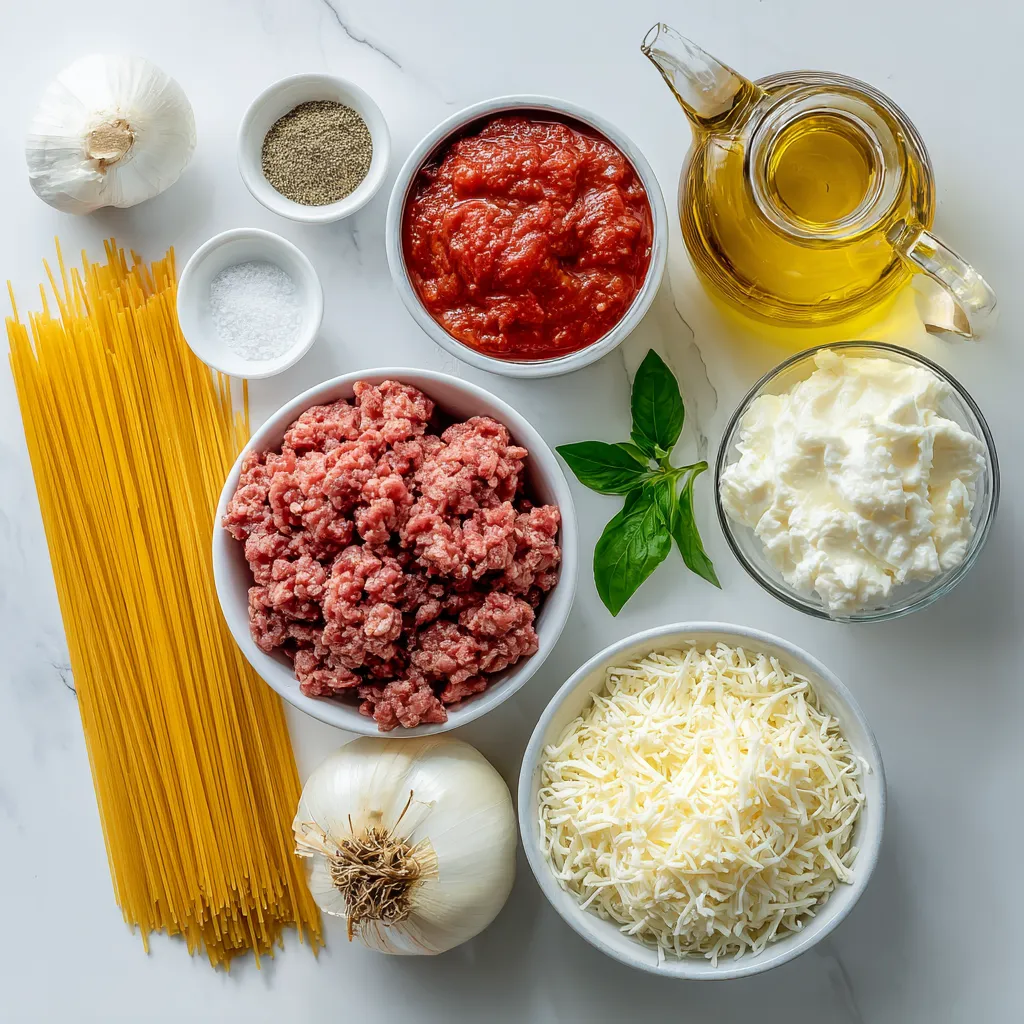 In this recipe, each ingredient plays a key role. The spaghetti forms the base of our dish, giving it structure. I prefer using 12 ounces of spaghetti for a nice balance. Ground beef adds heartiness and rich flavor. Diced onion and minced garlic bring depth and aroma.