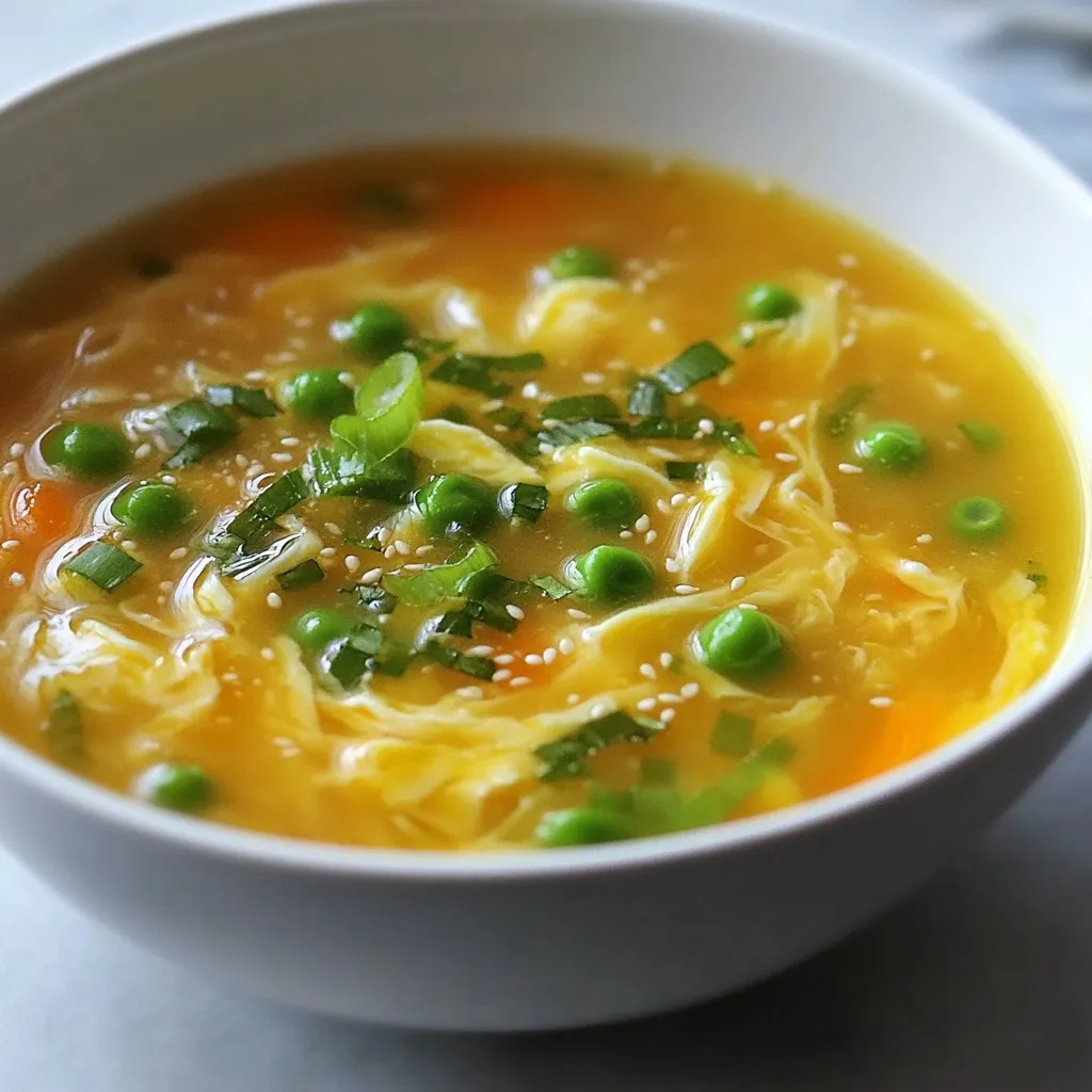 A quick and easy soup featuring delicate egg ribbons in a flavorful broth with vegetables.