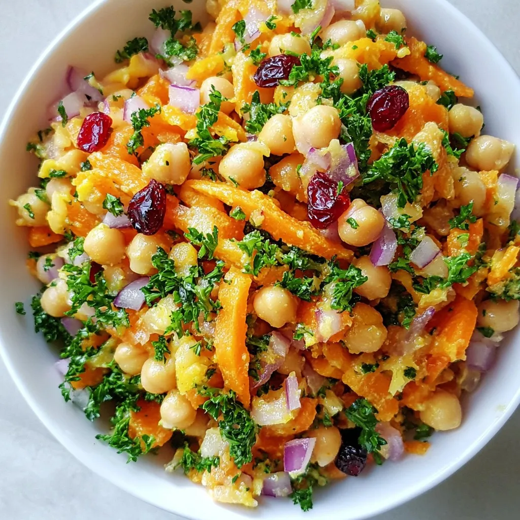 A refreshing salad featuring grated carrots, chickpeas, and a blend of spices, perfect for a light meal or side dish.