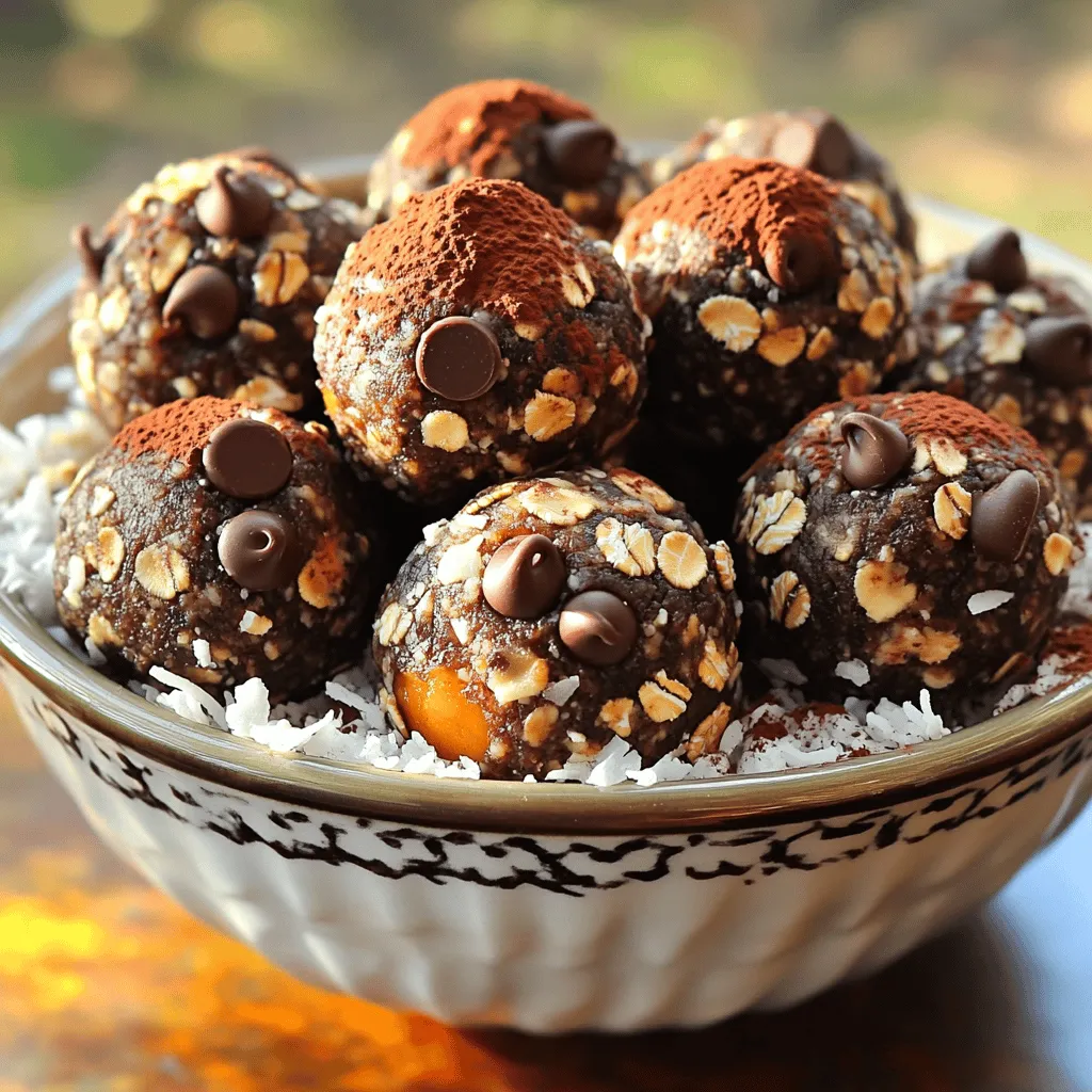 - 1 cup rolled oats - 1/2 cup canned pumpkin puree - 1/3 cup natural almond butter - 1/3 cup honey or maple syrup - 1/4 cup unsweetened cocoa powder The main base of our treat starts with rolled oats. They give a nice chewy texture. Canned pumpkin puree adds moisture and flavor. Almond butter provides healthy fats and a creamy touch. You can use honey or maple syrup for sweetness. Cocoa powder gives that rich chocolate taste. - 1/2 teaspoon vanilla extract - 1/4 teaspoon ground cinnamon - 1/4 teaspoon ground nutmeg - A pinch of salt To boost flavor, we add vanilla extract. It brings warmth to the mix. Ground cinnamon adds a hint of spice. Nutmeg offers a cozy taste, perfect for fall. A pinch of salt balances the sweetness and enhances all flavors. - 1/4 cup chocolate chips - Shredded coconut or crushed nuts for rolling For a chocolate kick, fold in some chocolate chips. They melt slightly and add sweetness. If you want extra texture, roll the balls in shredded coconut or crushed nuts. This step makes them even tastier and fun to eat. Mixing the Base Ingredients Start by taking a large mixing bowl. Add 1 cup of rolled oats. Then, pour in 1/2 cup of canned pumpkin puree. Next, add 1/3 cup of almond butter and 1/3 cup of honey or maple syrup. Mix these ingredients well. You want a thick and sticky base. Make sure everything blends nicely. Adding Cocoa and Spices Now, sprinkle in 1/4 cup of unsweetened cocoa powder. This adds rich chocolate flavor. Next, add 1/2 teaspoon of vanilla extract, 1/4 teaspoon of ground cinnamon, and 1/4 teaspoon of ground nutmeg. Don't forget a pinch of salt! Stir everything together until the mixture is smooth and even. Incorporating Chocolate Chips After mixing the cocoa and spices, fold in 1/4 cup of chocolate chips. This step adds little bursts of sweetness. Be gentle while folding to keep the chips intact. You want them spread throughout the mixture without breaking. Refrigeration to Firm Up Once the mixture is ready, cover the bowl with plastic wrap. Place it in the refrigerator for about 15-20 minutes. Chilling helps the mixture firm up, making it easier to shape. Rolling the Mixture into Balls After chilling, take the bowl out. Use your hands to grab about a tablespoon of the mixture. Roll it into a ball about the size of a golf ball. Repeat this until you shape all the mixture into balls. Optional: Rolling in Coconut or Nuts If you like, you can add extra texture. Roll each ball in shredded coconut or crushed nuts. This step is optional but adds a nice touch. Placing on Baking Sheet Once shaped, line a baking sheet with parchment paper. Place the oat balls on the sheet. Make sure to leave space between each ball. Additional Refrigeration Time Now, return the baking sheet to the fridge. Let the oat balls chill for another 30 minutes. This final cooling will help them set firmly. Enjoy your tasty and healthy snack! To get the right texture, adjust the sweetness. If you want a sweeter treat, use more honey or maple syrup. Start with the amount in the recipe and add more if needed. This helps balance the flavors. Choosing the right nut butter matters too. I love almond butter for its smoothness. You can use peanut butter for a stronger taste. Just pick what you enjoy most! For serving, use a fun bowl or platter. Arrange the oat balls in a circle or stack them high. This makes your treat look fancy. A sprinkle of cocoa or cinnamon on top adds a nice touch. If you host a party, these oat balls are a hit! Place them next to fresh fruit for a colorful display. Guests will love the look and the taste. One mistake is overmixing the ingredients. Mix just until combined. This keeps the oat balls from being too dense. Another mistake is skipping the chilling steps. Chilling helps the mixture firm up. If you don’t chill, the balls may fall apart. Be sure to follow the steps for the best results! {{image_2}} You can change the taste of your oat balls easily. Adding peanut butter gives a rich, nutty flavor. Sunflower seed butter is a great choice too. It keeps the snack nut-free. You can also spice things up! Try adding more cinnamon or even ginger for a warm taste. Mixing in a bit of cocoa nibs adds a fun crunch. Want to lower the sugar? Use less honey or maple syrup. You can also swap in mashed bananas for sweetness. If you need gluten-free options, use certified gluten-free oats. This way, everyone can enjoy these treats without worries. Mix-ins can make these oat balls even better. Dried fruits like raisins or cranberries add a sweet bite. You can also toss in seeds like chia or flax for extra nutrition. Different nuts like walnuts or pecans add a nice crunch too. Explore your favorites and find the perfect mix! - Refrigeration Tips for Freshness: Store these oat balls in an airtight container. Keep them in the fridge for best freshness. This will maintain their texture and flavor. - Freezing for Long-Term Storage: If you want to save some for later, freeze them. Place them in a freezer-safe bag. Make sure to remove as much air as possible before sealing. - Duration in the Refrigerator: These oat balls stay good in the fridge for about one week. If they last that long, they are a hit! - Duration in the Freezer: In the freezer, they can last for about three months. Just remember to label the bag with the date you made them. - Best Practices to Restore Freshness: You don’t need to reheat these treats. Enjoy them cold or let them sit at room temperature for a few minutes. This will help them soften and bring back the fresh taste. Yes, you can use quick oats. They will create a softer texture. However, rolled oats provide a nice chew. If you prefer a heartier bite, stick to rolled oats. These oat balls last about one week in the fridge. Keep them in an airtight container. This keeps them fresh and tasty for your snacking needs. Yes, you can make these without honey or maple syrup. Try using agave nectar or date syrup instead. For a sugar-free option, use mashed banan