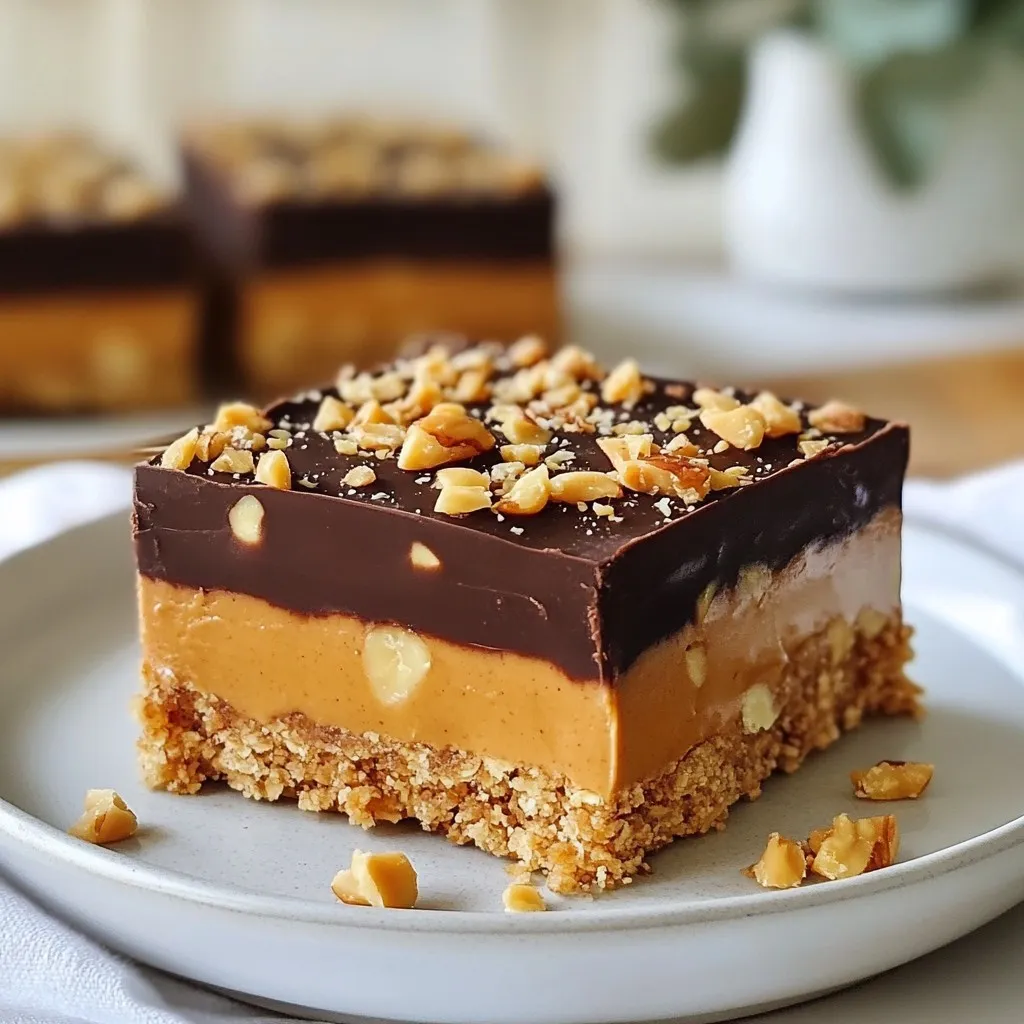 Deliciously creamy and chocolatey bars made with peanut butter and oats.