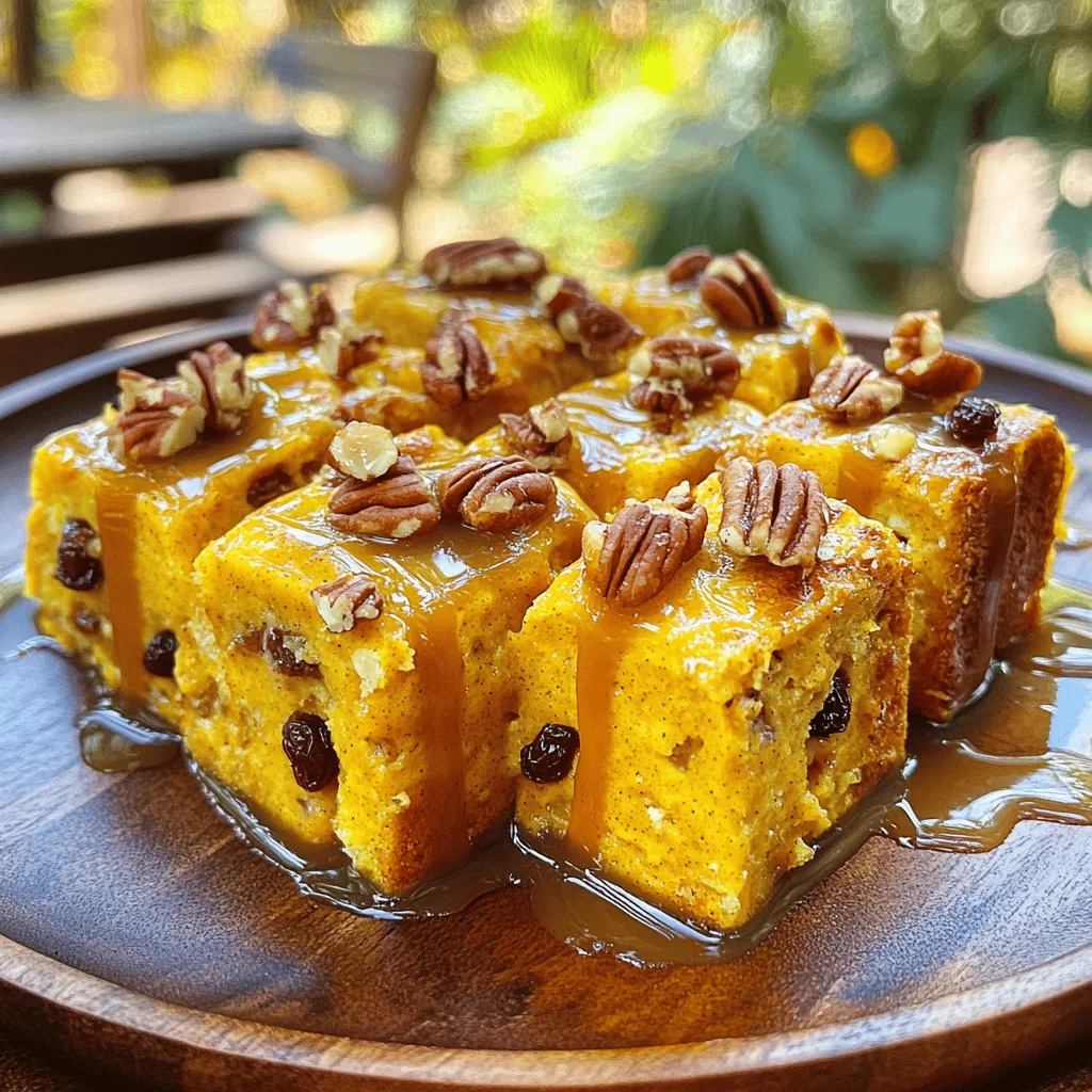 One common mistake is not letting the bread soak long enough. Make sure the bread absorbs the pumpkin mixture. Stir occasionally for even soaking. Another mistake is overcooking the pudding. Keep an eye on the time and check for doneness. The knife should come out clean when inserted in the center. Lastly, don’t skip the caramel sauce. It adds a delicious sweetness!