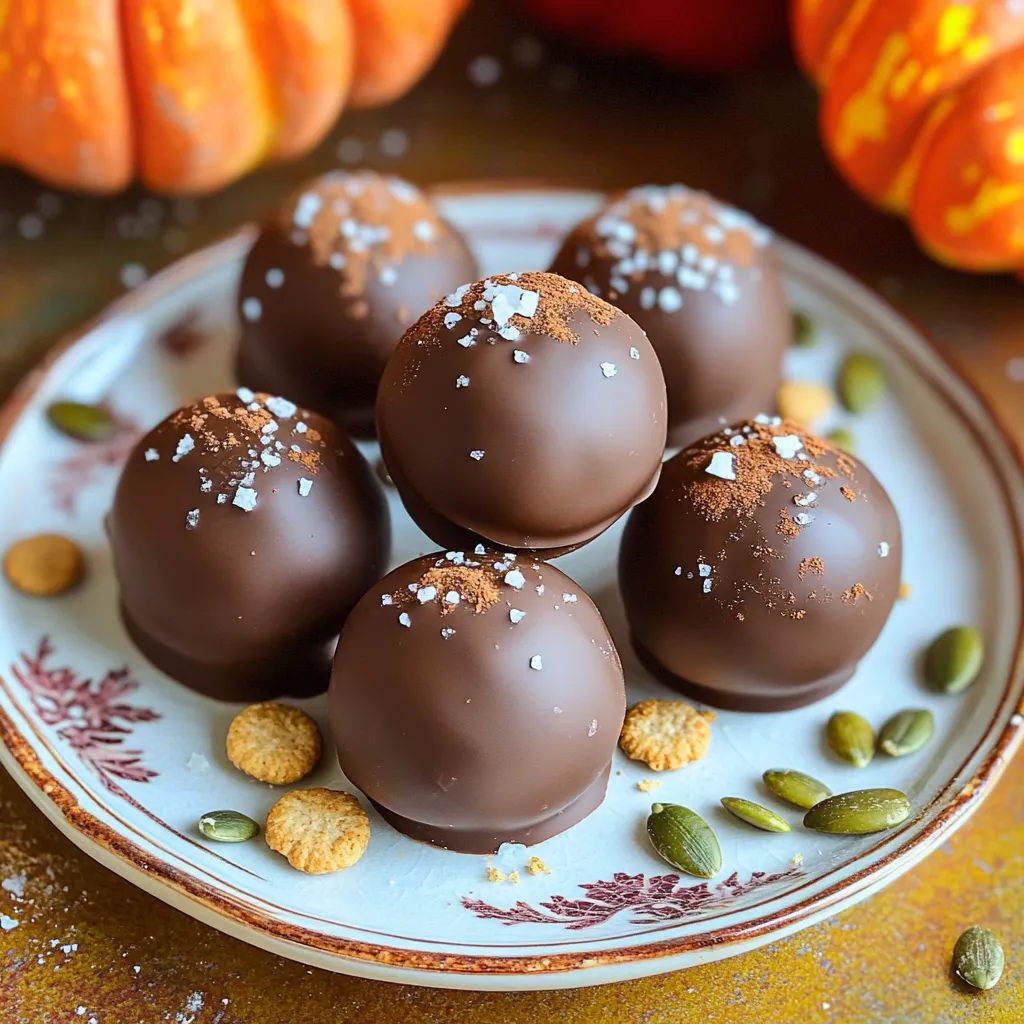 Next, dip each truffle into the melted chocolate. Make sure each one is fully coated. Use a fork to lift them out, tapping off any extra chocolate. Return them to the baking sheet. Before the chocolate sets, sprinkle a small pinch of sea salt on each truffle. This adds a nice contrast to the sweetness. Let the chocolate firm up at room temperature, or place the tray in the fridge for quicker results. Enjoy your delicious pumpkin cream cheese truffles!