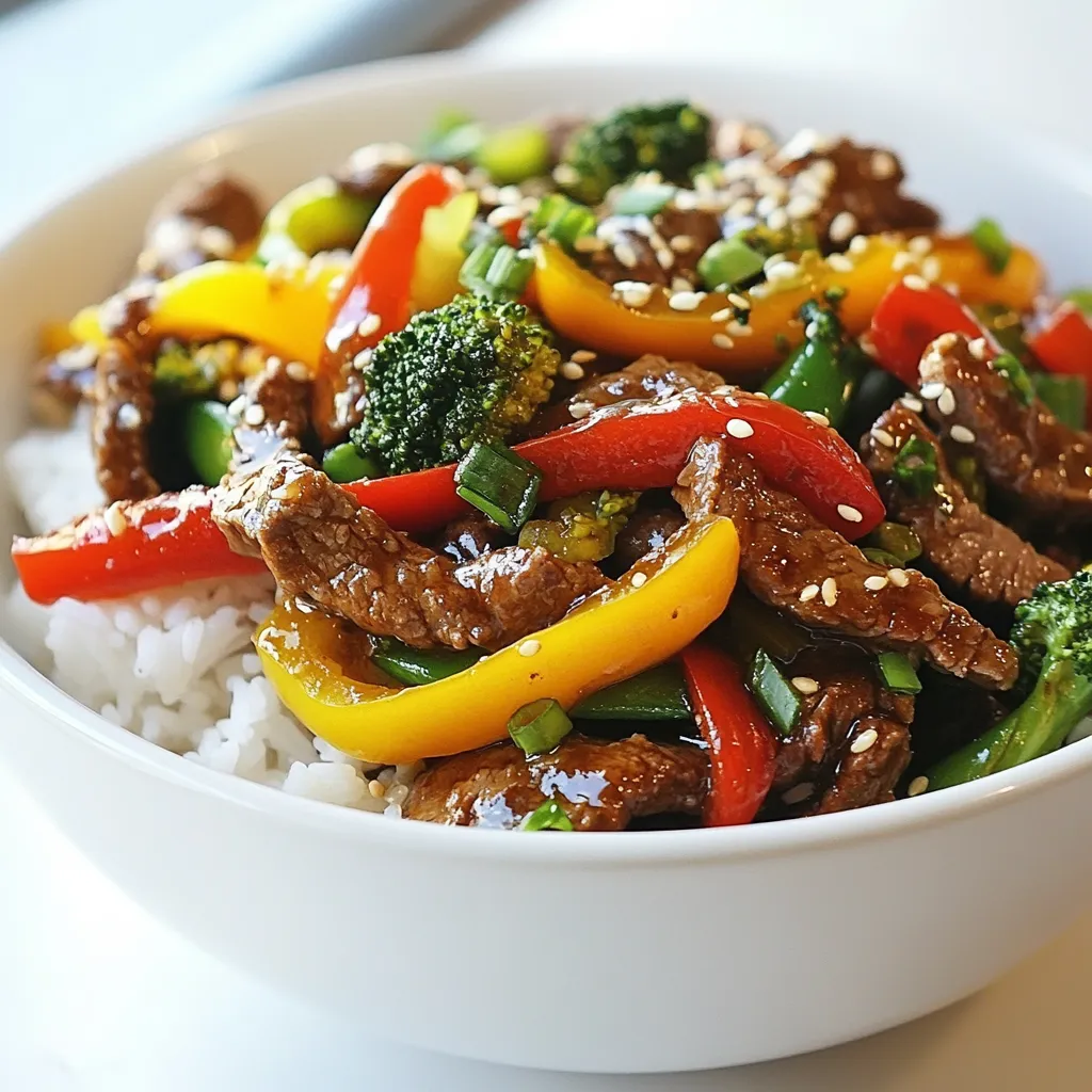 A vibrant stir-fry featuring marinated beef and a colorful mix of vegetables, perfect for a quick and delicious meal.