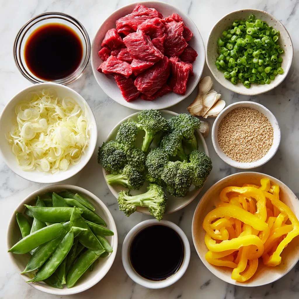 The key to a great beef stir-fry is using fresh, quality ingredients. I often choose beef sirloin for its taste and tenderness. Slicing it thin helps it cook fast. Fresh vegetables add color and crunch. I love using red and yellow bell peppers for sweetness and broccoli for a healthy bite. Snap peas add a nice snap and texture.