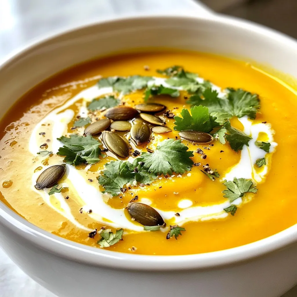 Ladle the soup into bowls and top with fresh cilantro or parsley. Drizzle a little extra coconut milk for a creamy swirl and garnish with roasted pumpkin seeds for crunch.
