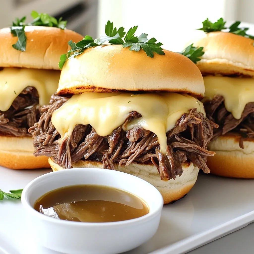 For a nice touch, plate your sandwiches with a small bowl of broth. This adds a fun dipping element. Garnishing with fresh parsley brightens up the plate, making it look great.
