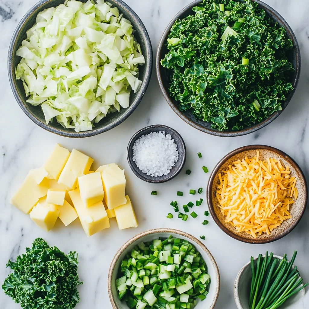 These ingredients come together to create a warm and hearty dish. The potatoes provide a creamy base, while the cabbage and kale add great texture and flavor. You can use any type of cheddar cheese you prefer, but I love a sharp cheddar for its rich taste. The butter brings everything together, making the dish feel comforting and indulgent. A pinch of nutmeg adds warmth, but it’s totally optional. Don’t forget the fresh chives! They add a burst of color and a fresh taste that makes the dish pop.
