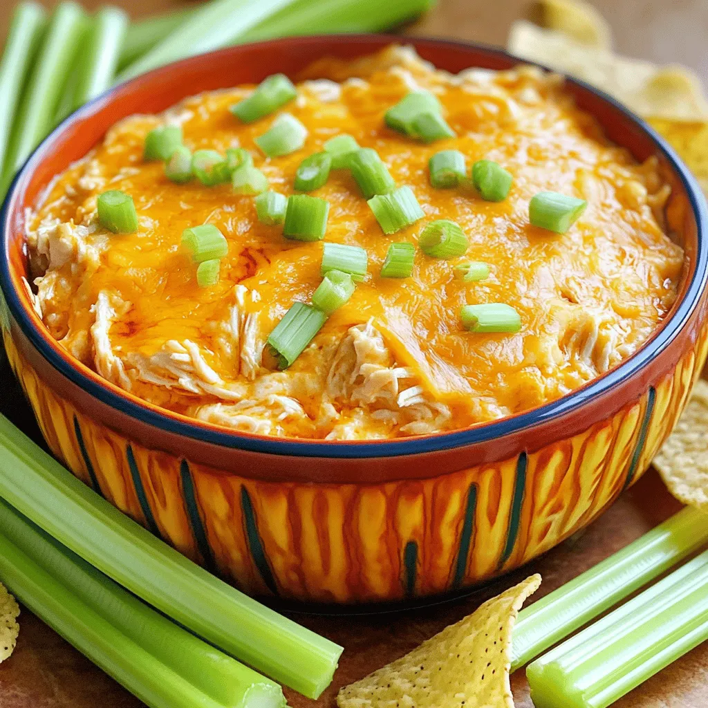 To make this dip, you start with shredded cooked chicken. I find rotisserie chicken saves time and tastes great. Next, you need softened cream cheese. This gives the dip a creamy texture. Then, buffalo sauce adds that spicy kick. You can adjust the amount based on how hot you like it.