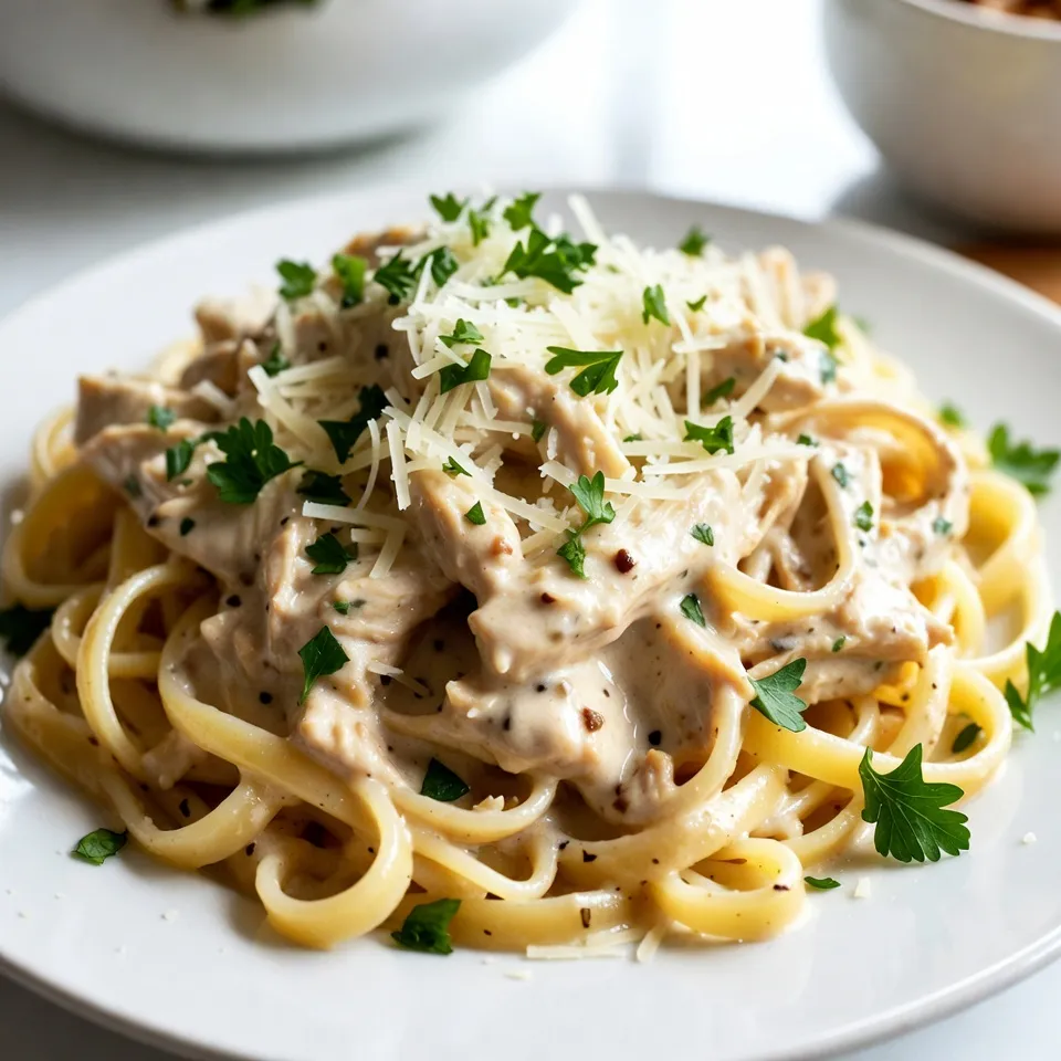A rich and creamy chicken Alfredo made effortlessly in a slow cooker.