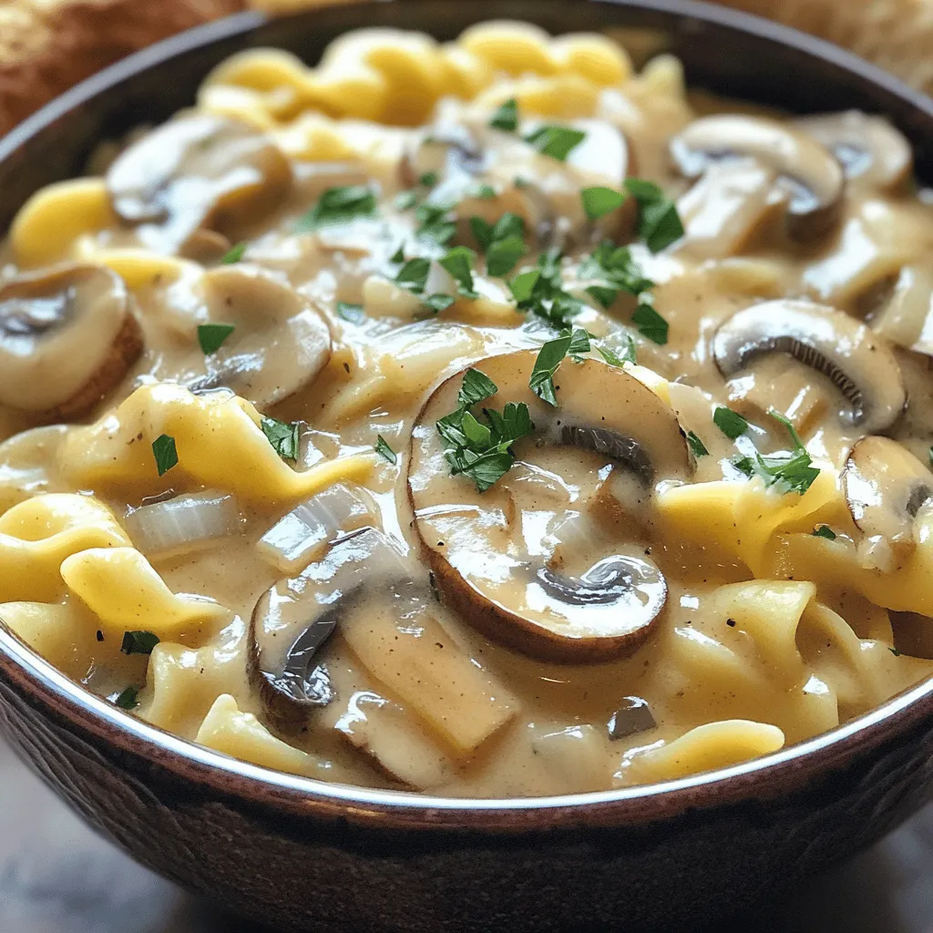 Once the cooking time is up, it’s time to make it creamy. Stir in the sour cream and the cornstarch mixed with water. This will thicken the sauce and make it smooth. Cook on high for an extra 30 minutes. Meanwhile, prepare your egg noodles according to the package directions. After they are cooked, drain them and set aside. Finally, combine the cooked noodles with the mushroom mixture. Stir gently to coat the noodles in the creamy sauce. Enjoy the burst of flavors!