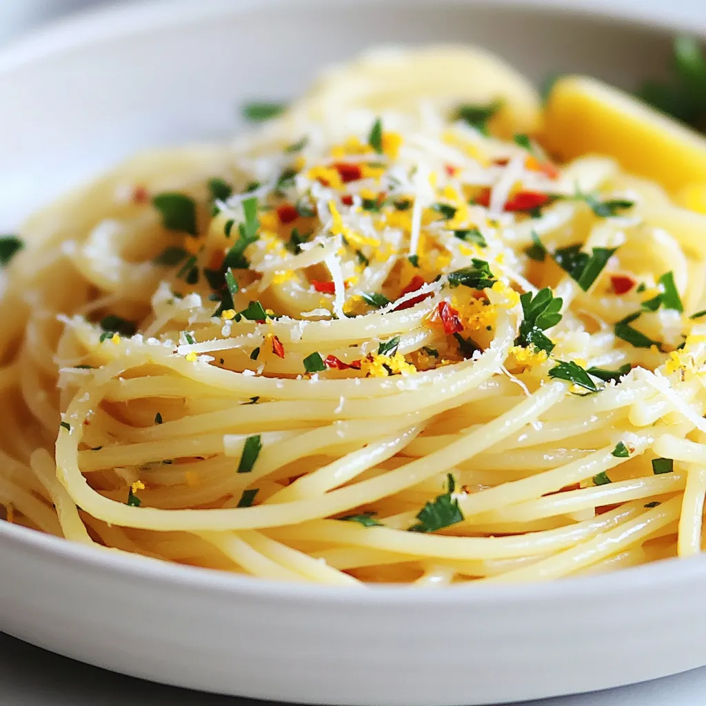 A classic Italian pasta dish with garlic, olive oil, and a hint of lemon and parsley.