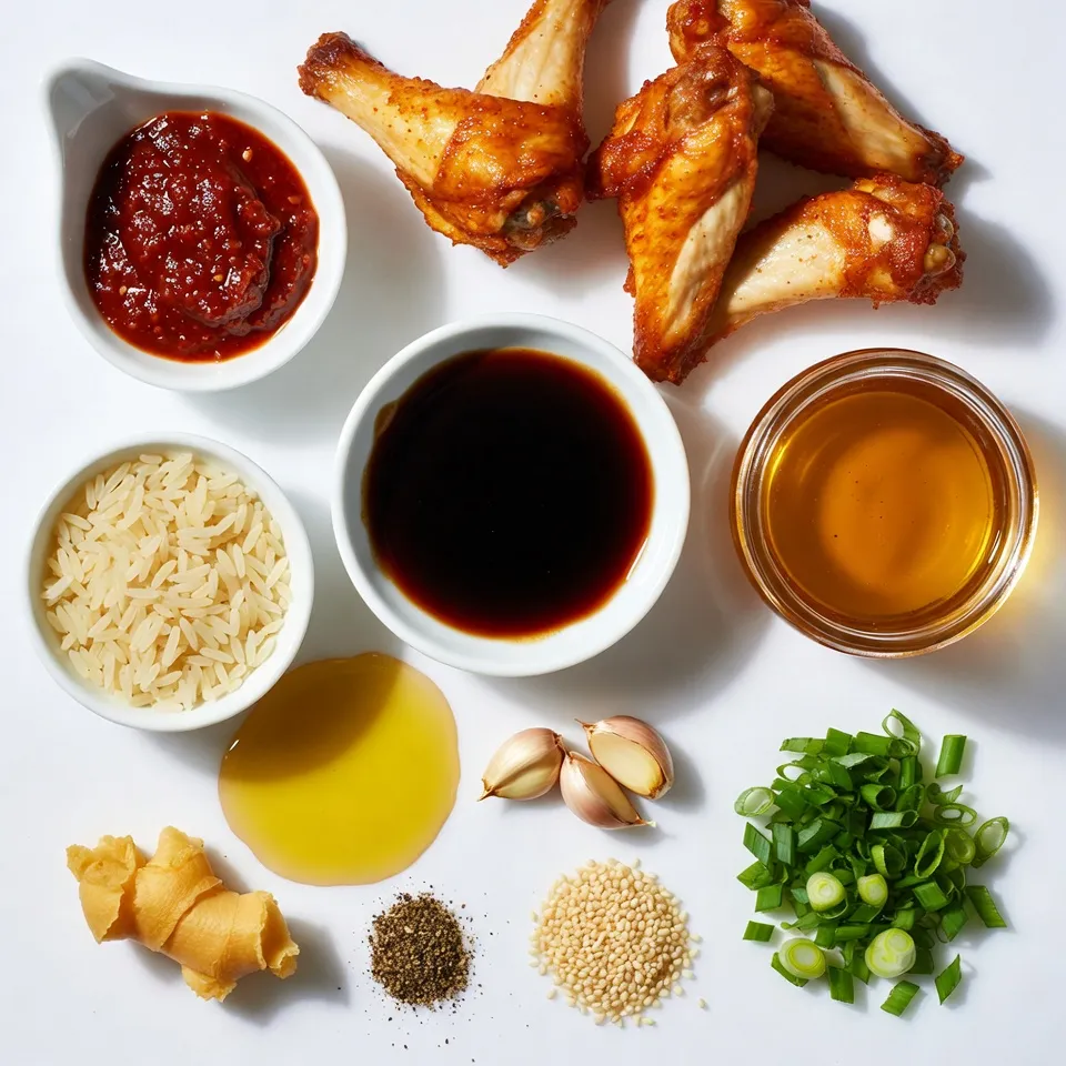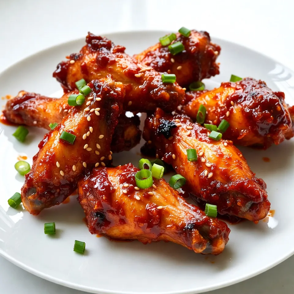 To make spicy Korean chicken wings, you need these key items: - 2 lbs chicken wings - 1/4 cup gochujang (Korean chili paste) - 2 tablespoons soy sauce - 2 tablespoons honey - 1 tablespoon rice vinegar - 1 tablespoon sesame oil - 3 cloves garlic, minced - 1 inch ginger, grated - 1 teaspoon ground black pepper - 1 tablespoon sesame seeds (for garnish) - Chopped green onions (for garnish) These ingredients create a bold flavor that really packs a punch. You can add even more flavor with these ingredients: - A splash of lime juice for brightness - A pinch of cayenne for more heat - Fresh cilantro for a herbal note These extras can take your wings to the next level! If you can't find some ingredients, here are good swaps: - Use sriracha instead of gochujang for a similar heat - Maple syrup can replace honey for a vegan option - Use vinegar if you don't have rice vinegar These substitutions will keep your wings tasty while accommodating your pantry. {{ingredient_image_1}} To make the marinade, grab a large bowl. Mix together the gochujang, soy sauce, honey, rice vinegar, sesame oil, minced garlic, grated ginger, and black pepper. Whisk it well until it is smooth. This blend brings a sweet and spicy kick to the chicken wings. Now, take your chicken wings and add them to the marinade. Make sure each wing gets a good coat. Cover the bowl and pop it in the fridge. Let it marinate for at least one hour. For the best flavor, marinate overnight. When you're ready, preheat your oven to 400°F (200°C). Line a baking sheet with foil for easy cleaning later. Take the marinated wings out of the fridge and place them on the baking sheet in one layer. Reserve the leftover marinade for later. Bake the wings for 25-30 minutes. Flip them halfway through for even cooking. They should be crispy and fully cooked. While the wings bake, pour the reserved marinade into a small saucepan. Heat it over medium heat until it simmers. Cook for about five minutes to thicken it up. Once the wings are done, brush them with this thickened glaze. Return the wings to the oven for another five minutes. This step will caramelize the glaze and add even more flavor. After that, let the wings cool for a few minutes before serving. Enjoy your spicy Korean chicken wings! To get crispy chicken wings, start by patting them dry. Moisture makes wings soggy. Use a baking sheet lined with foil to catch drips. This helps with cleanup. Bake the wings at 400°F (200°C) for 25-30 minutes. Flip them halfway to ensure even cooking. If you want extra crispiness, broil them for the last 2-3 minutes. This gives them a nice brown color. One big mistake is not marinating long enough. For the best flavor, marinate overnight. Another mistake is overcrowding the baking sheet. Wings need space to cook evenly. Avoid using high heat early. This can burn the sauce before the wings cook through. Lastly, don’t skip the glaze step. Brushing the wings with thickened marinade adds flavor and shine. Serve your wings on a large platter for a fun look. Drizzle with extra glaze for a glossy finish. Sprinkle sesame seeds and chopped green onions on top. This adds color and crunch. Pair the wings with veggie sticks or rice for a complete meal. You can even serve them with a cool dipping sauce. Try a yogurt-based sauce to balance the heat. These ideas make your dish pop and impress your guests. Pro Tips Marinate Longer for Depth of Flavor: For the best flavor, marinate the chicken wings overnight. This allows the spices to penetrate the meat thoroughly. Ensure Even Cooking: When baking, arrange the wings in a single layer on the baking sheet. This helps them cook evenly and become crispy. Use a Meat Thermometer: To ensure the chicken wings are fully cooked, use a meat thermometer. The internal temperature should reach 165°F (74°C). Perfectly Glazed Wings: For a glossy finish, brush the wings with the thickened marinade before the final baking step. This caramelizes the glaze beautifully. {{image_2}} You can easily adjust the heat in these wings. If you love spice, add more gochujang. For less heat, use less gochujang or mix in some honey. This way, you control the kick. You can also add a pinch of cayenne pepper for extra heat. To make these wings gluten-free, swap soy sauce for tamari. Tamari gives a similar flavor without gluten. Check labels to ensure all ingredients are gluten-free. This keeps your wings tasty and safe for everyone. You can switch up the flavors too! Add a splash of lime juice for a zesty twist. Try mixing in some sesame seeds for crunch. You can also add chopped cilantro for a fresh taste. Each change makes the wings unique and delicious. After you enjoy your spicy Korean chicken wings, you may have some left. To store them, let the wings cool to room temperature. Place them in an airtight container. This keeps the wings fresh. Store them in the fridge for up to three days. If you want to keep them longer, consider freezing. When you're ready to eat the wings again, you can reheat them easily. Preheat your oven to 375°F (190°C). Place the wings on a baking sheet. Heat them for about 10-15 minutes. This way, they become crispy again. You can also use a microwave, but it may make them soft. Freezing is a great way to save your wings for later. To freeze, wrap each wing in plastic wrap. Then place them in a freezer bag. Make sure to remove as much air as possible. Your wings can stay fresh in the freezer for up to three months. When you're ready to eat, thaw them in the fridge overnight before reheating. These chicken wings pack a nice kick. The gochujang adds heat, but it’s balanced. If you love spice, you'll enjoy them. If you prefer milder flavors, reduce the gochujang by half. You can adjust the spice to match your taste. Yes, you can grill these wings! Grilling adds a smoky flavor that pairs well with the marinade. Just preheat your grill to medium heat. Grill the wings for about 15-20 minutes, turning often. Make sure they reach an int