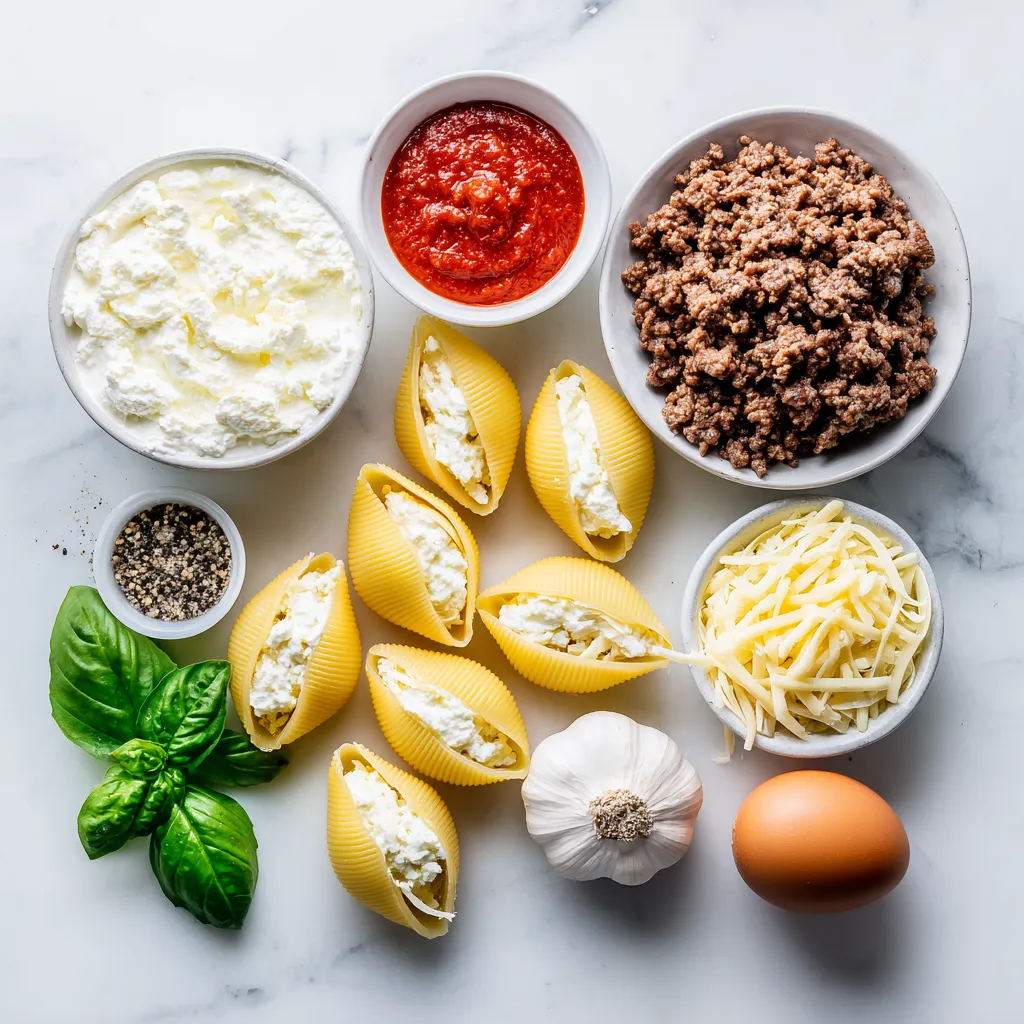 Gather these ingredients for a tasty stuffed shells dish. Each one plays a crucial role in making this meal delicious and satisfying. Enjoy the process of cooking and the joy it brings to your table!