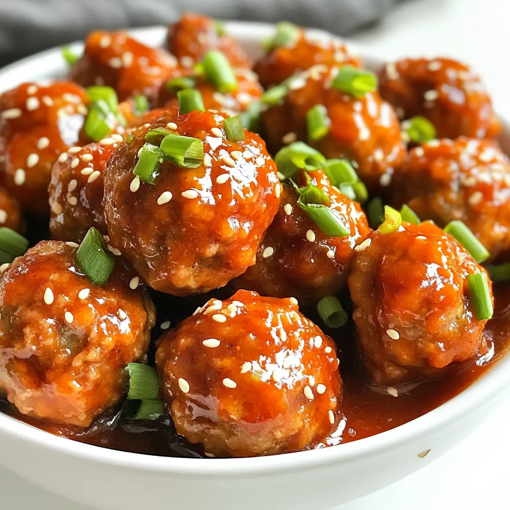Finally, let’s talk sauce. Sweet chili sauce gives a nice sweetness and heat. Combine it with rice vinegar for a tangy twist. Sesame oil adds a nutty note that rounds out the flavors. Don’t forget to add salt and pepper to taste. For a pretty finish, sprinkle some sesame seeds on top when serving. This mix of ingredients makes these meatballs a hit every time!