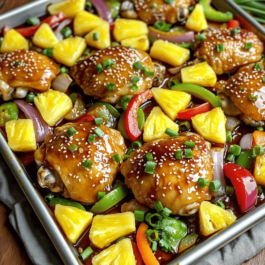 To ensure your chicken is juicy, avoid overcooking. If you have a meat thermometer, use it! Check the thickest part of the chicken. The pineapple and veggies should be slightly charred and soft. Let the dish rest for a few minutes after baking. This helps the juices settle and makes every bite delicious.
