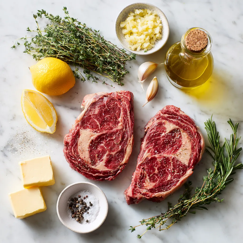 The ingredients for my ultimate garlic butter steak are simple yet full of flavor. I always choose ribeye steaks because they have great marbling. This fat makes the meat juicy and tender. You need just four tablespoons of unsalted butter. This rich butter will help create that mouthwatering garlic flavor.
