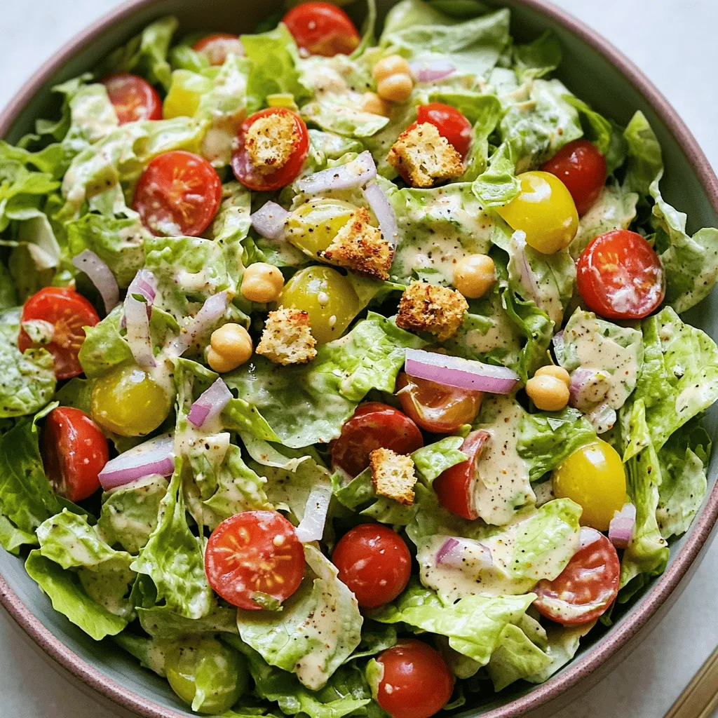 To keep your salad crisp, add ingredients just before serving. Romaine lettuce wilts quickly, so mix it in last. If you make the salad ahead of time, store the dressing separately. This keeps everything fresh. For crunch, choose croutons that are crispy and not stale. You can even bake your own for a personal touch.