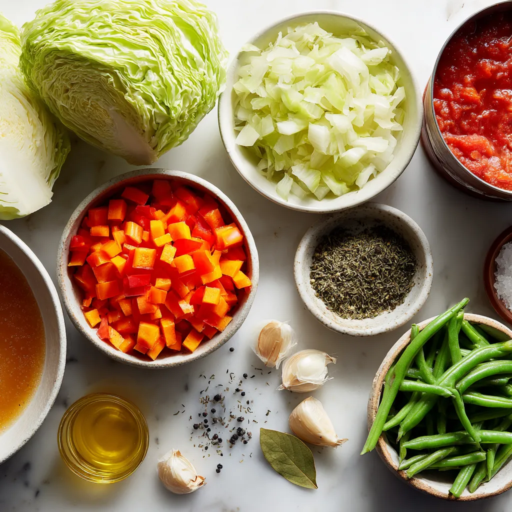 This soup is light and full of flavor. Each ingredient plays a role in making it tasty. Cabbage gives it a nice crunch and is low in calories. Onions and garlic add depth to the flavor. Carrots and celery bring sweetness and texture. The bell pepper adds color and more taste. Diced tomatoes give it a rich base.